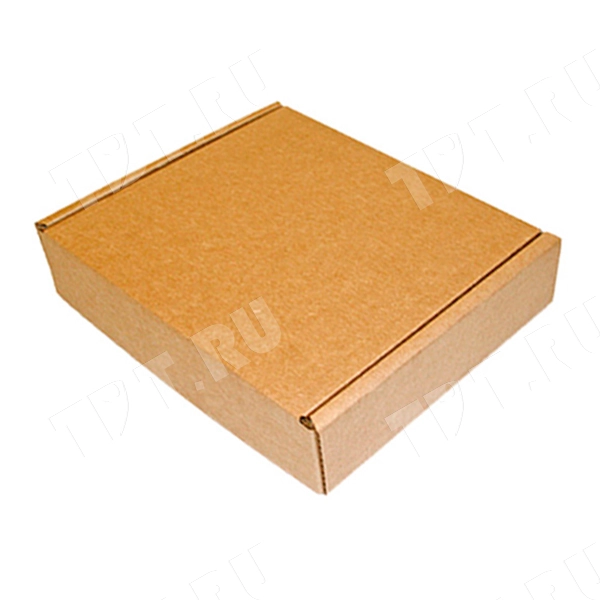 Короб КС-77 бурый, длиной 320 мм, шириной 240 мм и высотой 50 мм. Изготовлен из трёхслойного картона Т-24 В. Полезный объём — 3.84 л.