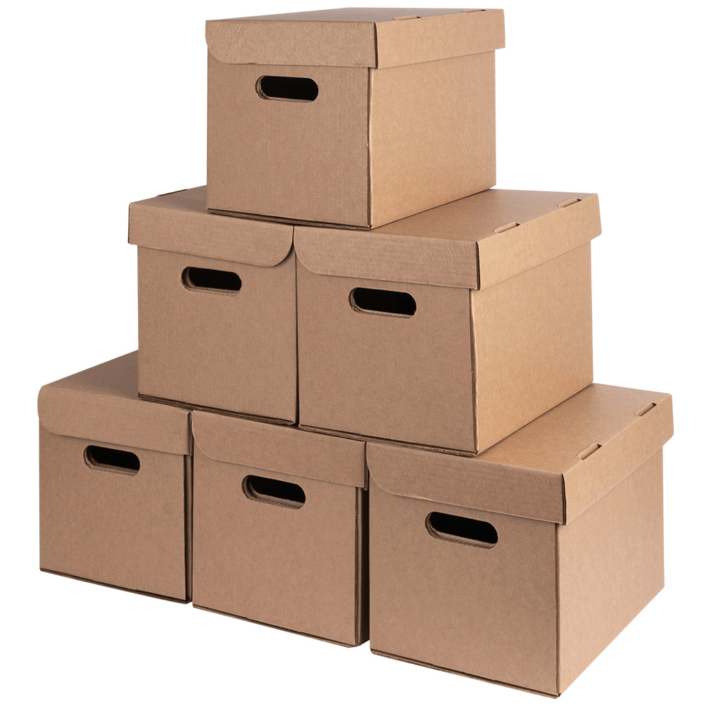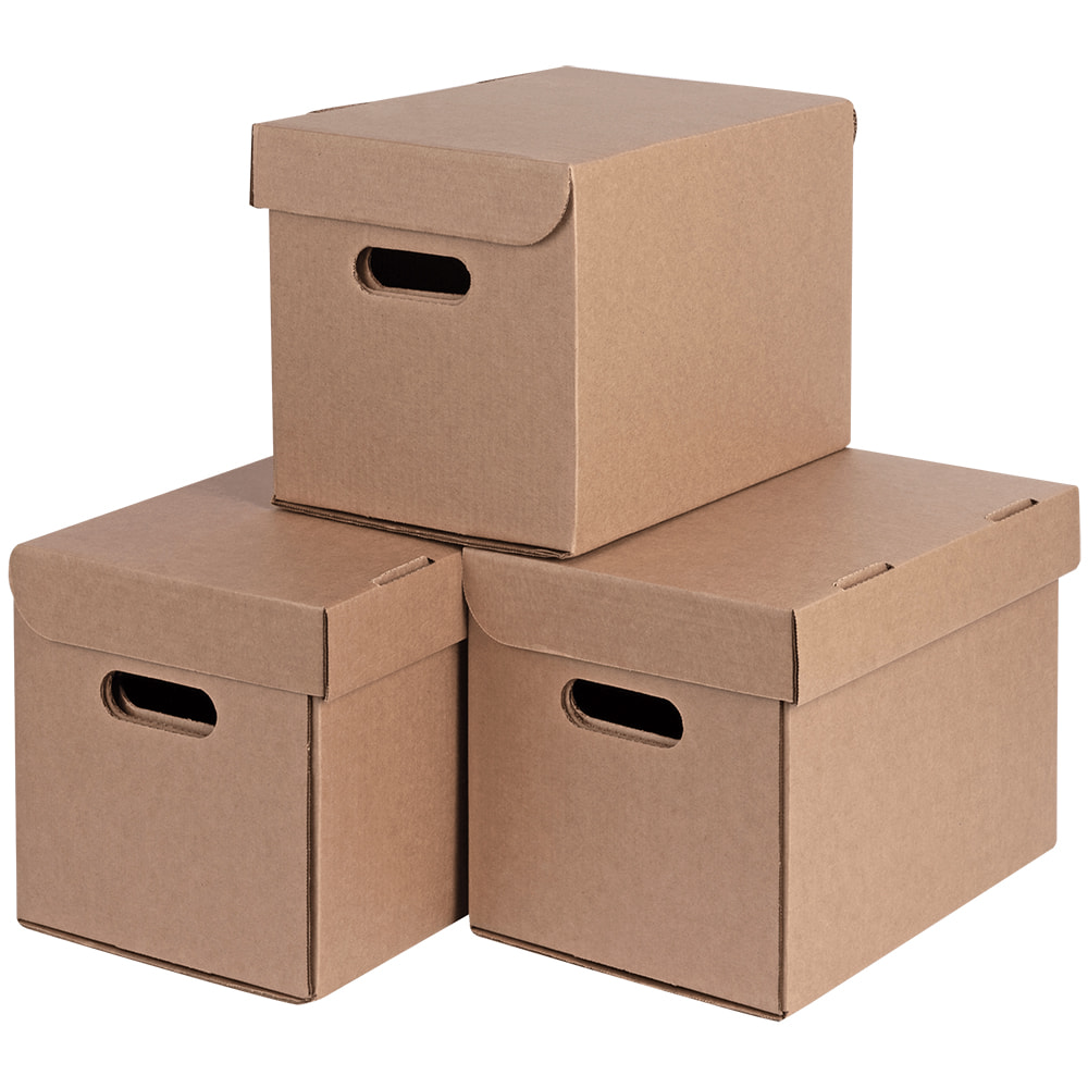 Беру уже тут третий раз, отличные картонные коробки с крышкой и ручками! Намного удобнее обычных коробов. Положила все нужное, закрыла крышку и понесла, удобно и быстро. Клала в них книги, транспортировку выдержали, могу рекомендовать к покупке