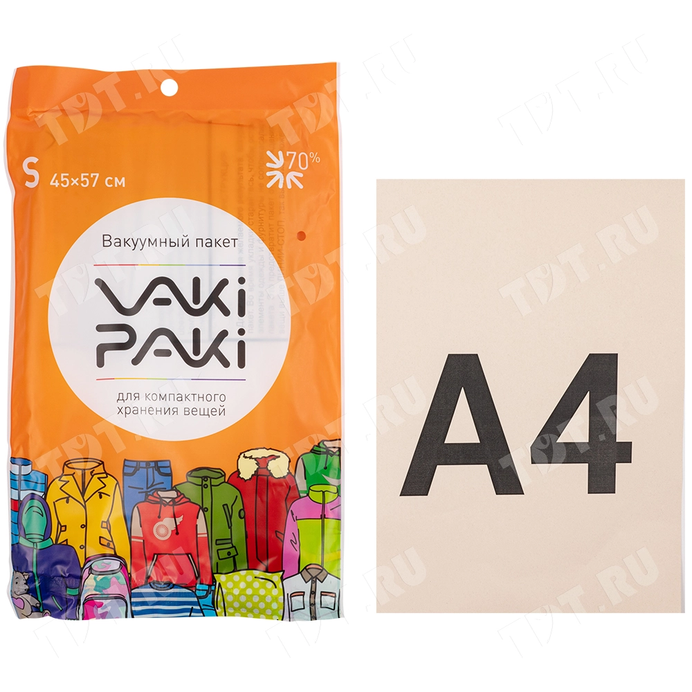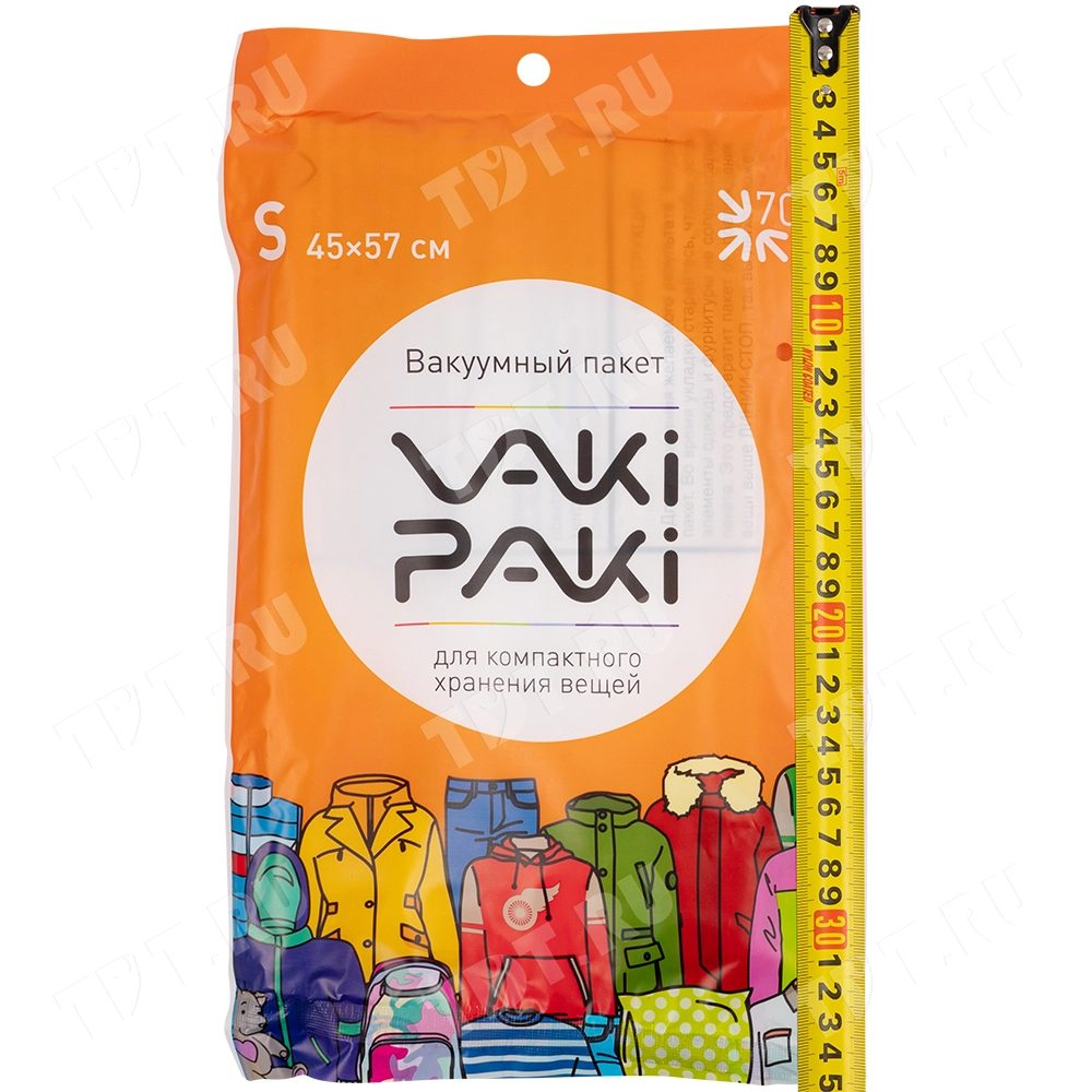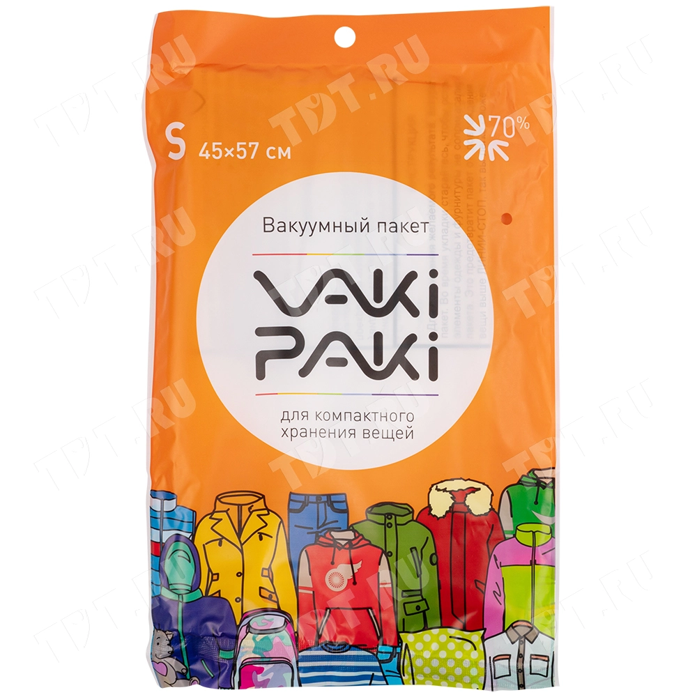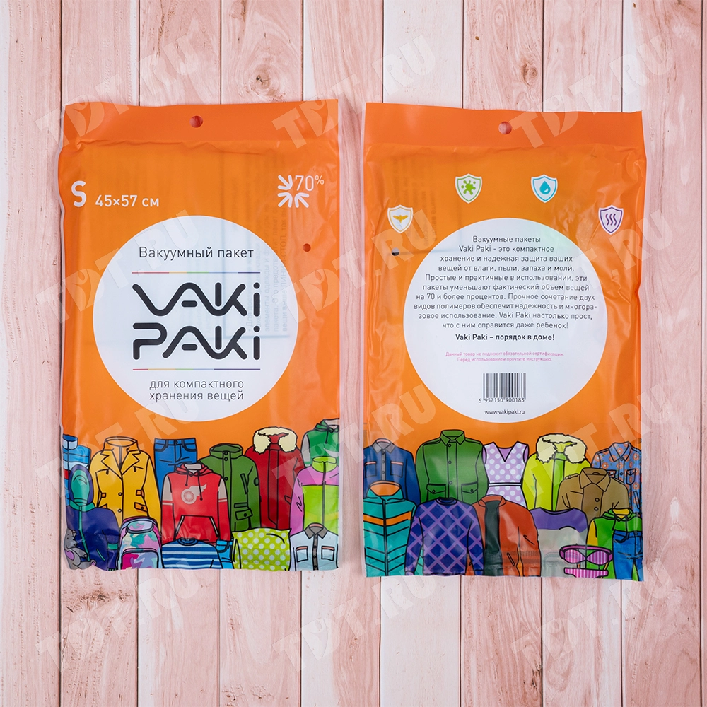 Вакуумный пакет для компактного хранения вещей S, прозрачного цвета, длиной 57 см, шириной 45 см, толщиной 80 мкм, в упаковке по 1 штуке. Изготовлены из полиэтилена высокого давления (ПВД). Клапан последнего поколения (можно удалять воздух пылесосом). Производится в Китае.