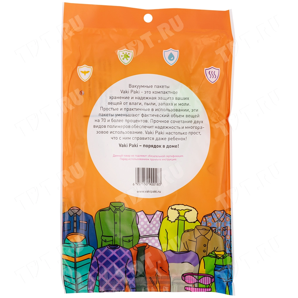 Толщина стенки вакуумного пакета для вещей - 80 мкм.