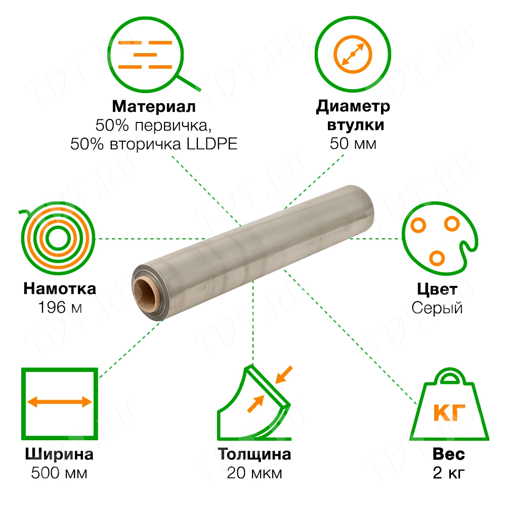 Упаковочная стрейч пленка ЭКОНОМ серая, 500 мм, 20 мкм, 2 кг, 2 сорт