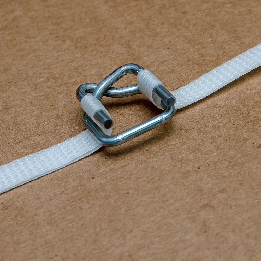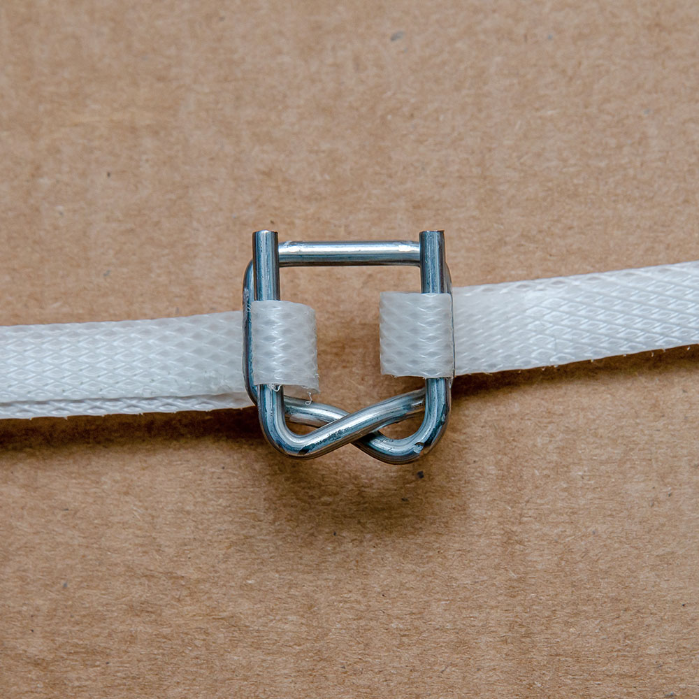 При помощи пряжек можно подтянуть свободный конец ленты и снова плотно закрепить упаковку. Являются простым и надежным материалом для упаковки.
