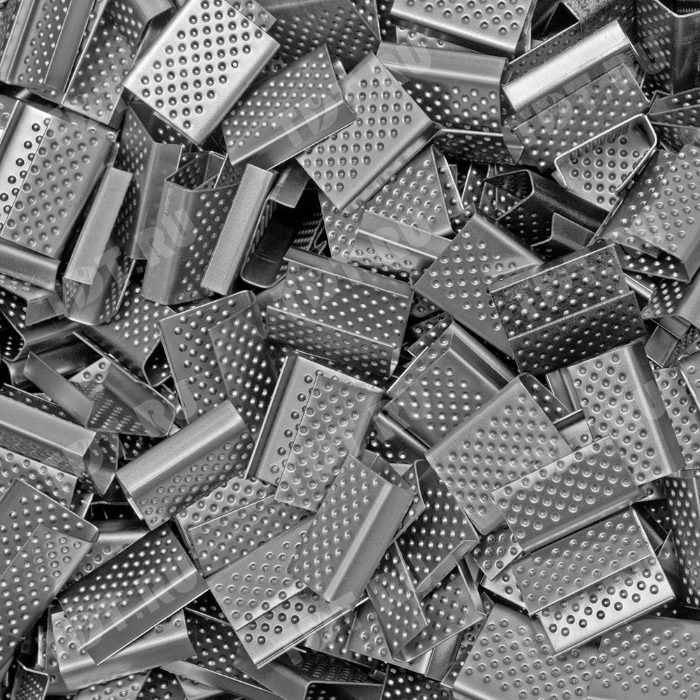 Металлические оцинкованные скобы для полипропиленовых лент (ПП), шириной 13 мм, толщиной 0.5 мм, в упаковке по 1000 шт, весом 3.28 кг, транспортировочным объемом 0.004374 м³. Скобы подходят для лент шириной 12 мм. Производятся в России.