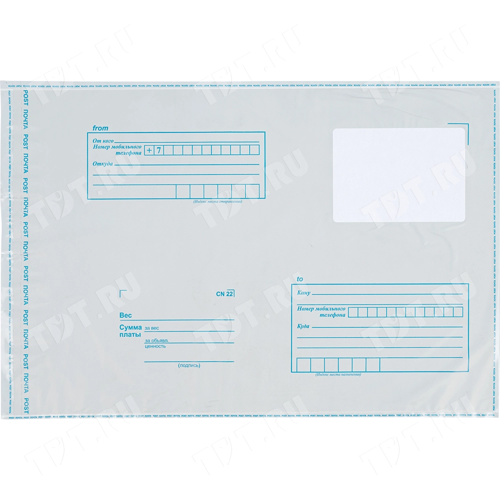 Почтовый пакет изготовлен из высокопрочного пятислойного полиэтилена.