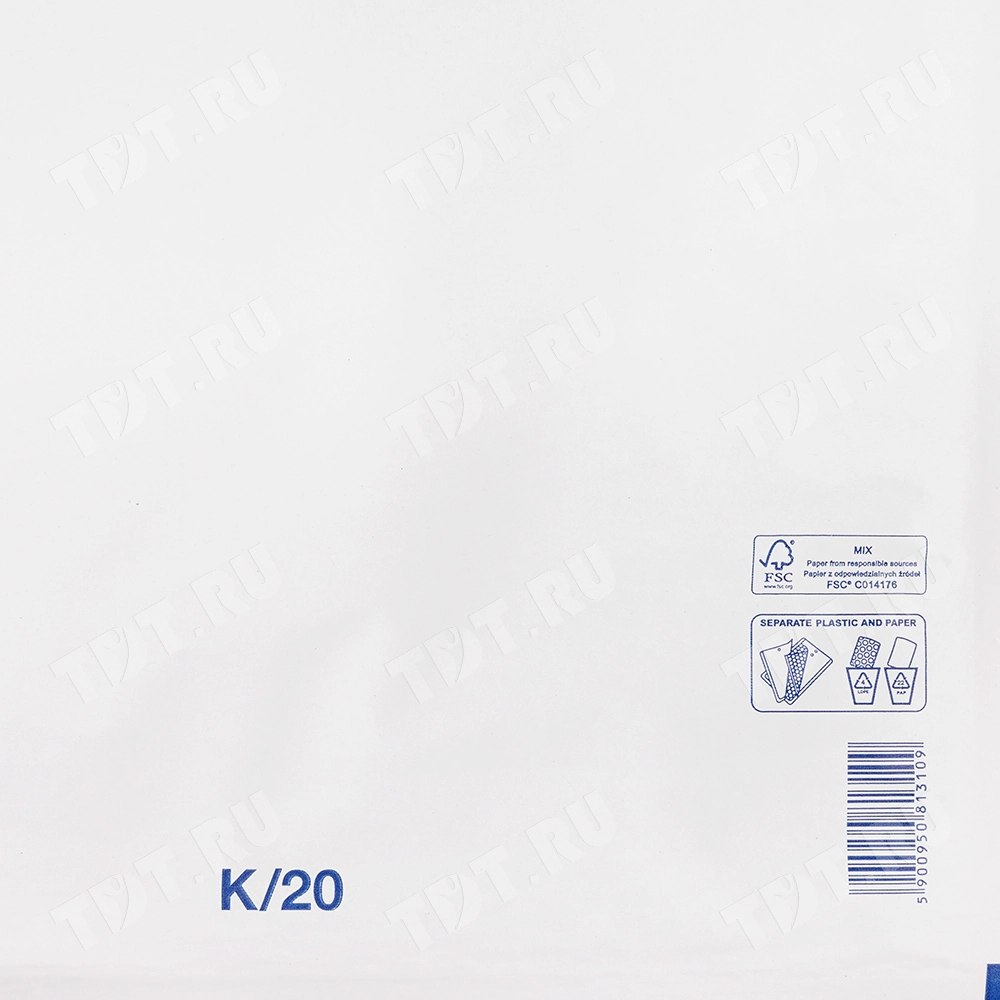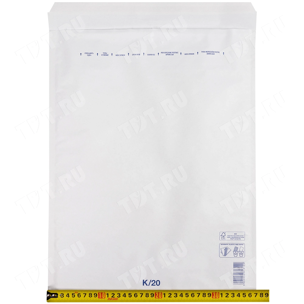 Белый крафт-пакет с воздушной прослойкой шириной 37 см и длиной 48 см. Внутренние размеры - 35*47 см. Изготовлен из крафт-бумаги и полиэтилена (внутренняя вставка). Производится в России.