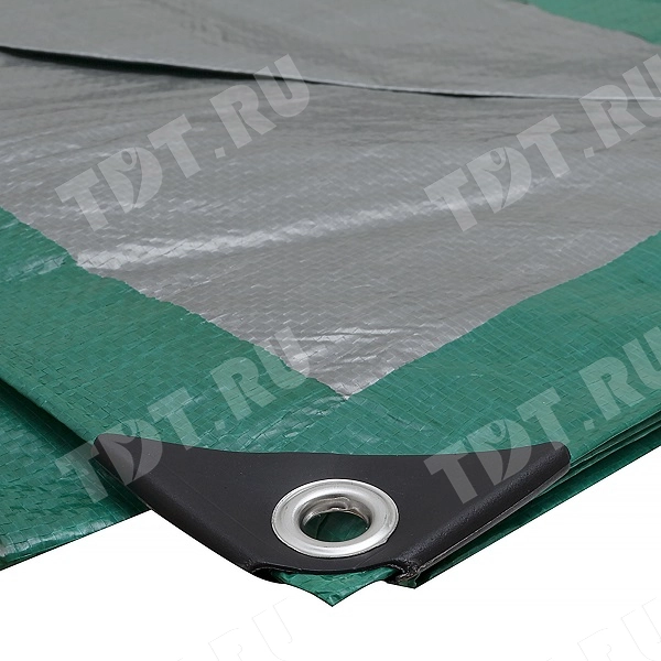 Зеленый универсальный защитный тент «Тарпаулин®» с люверсами из особо прочной полиэтиленовой ткани длиной 4 м, шириной 3 м, площадью 12 м², плотностью 120 г/м². Производится в России.