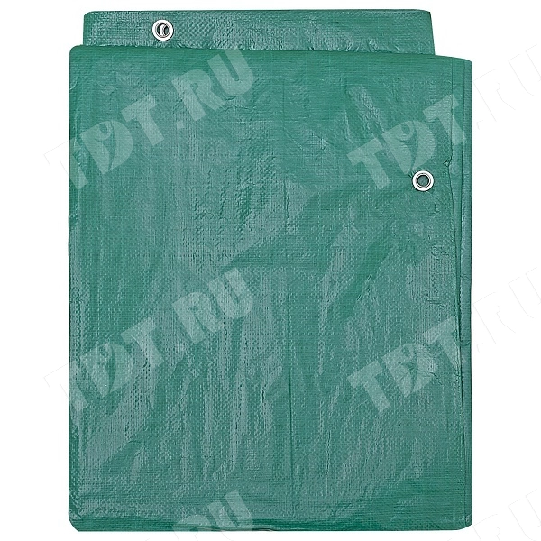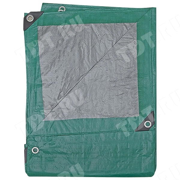 Зеленый универсальный защитный тент «Тарпаулин®» с люверсами из особо прочной полиэтиленовой ткани длиной 6 м, шириной 3 м, площадью 18 м², плотностью 120 г/м². Производится в России.