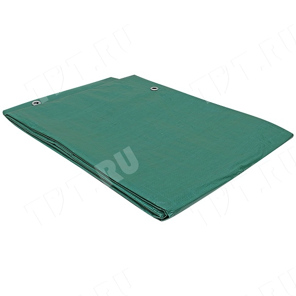 Большой зеленый защитный тент «Тарпаулин®» с люверсами из особо прочной полиэтиленовой ткани длиной 8 м, шириной 6 м, площадью 48 м², плотностью 120 г/м². Производится в России.