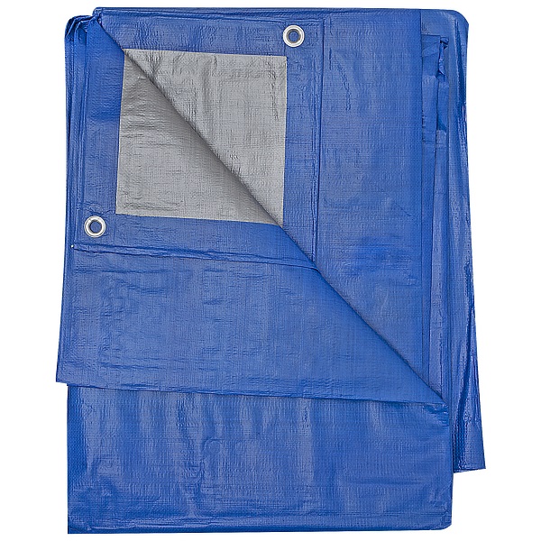 Синий защитный тент «Тарпаулин®» с люверсами из особо прочной полиэтиленовой ткани длиной 5 м, шириной 3 м, площадью 15 м², плотностью 180 г/м². Производится в России.