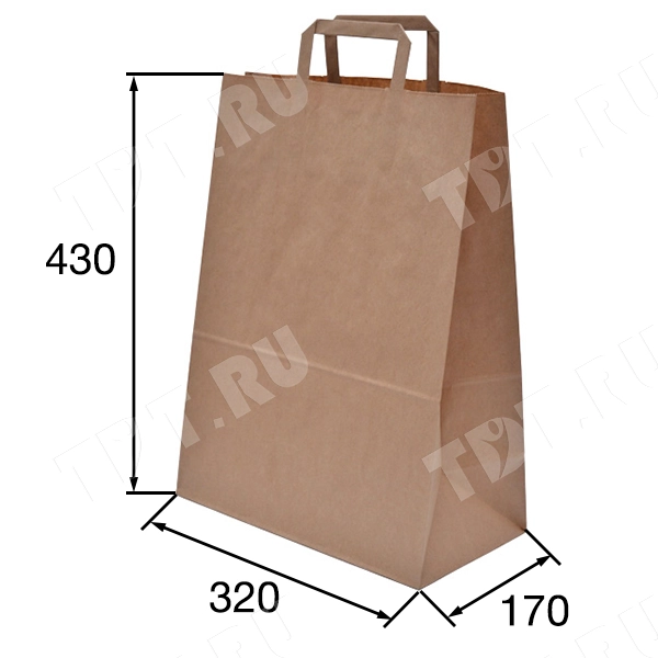 Крафт пакет с плоской ручкой, 70 г/м², 32*17*43 см