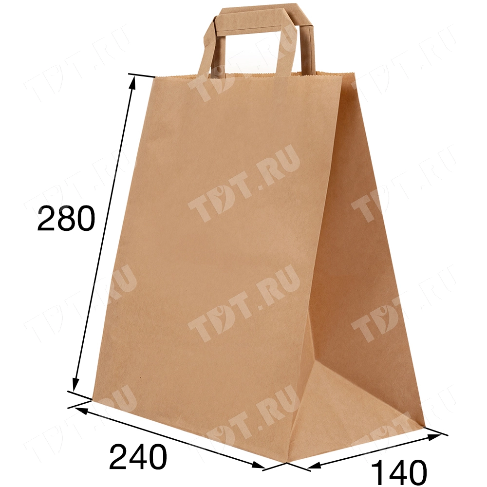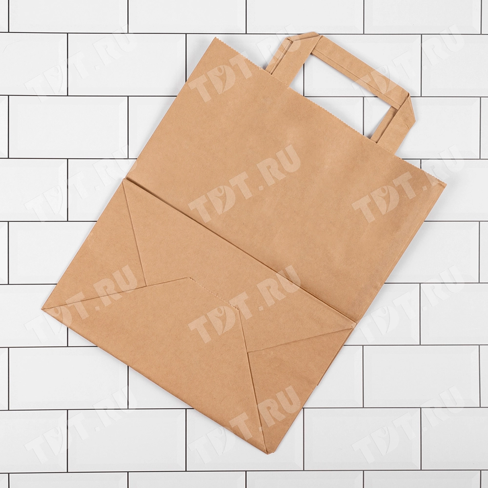 Крафт пакет с плоской ручкой, 70 г/м², 24*14*28 см