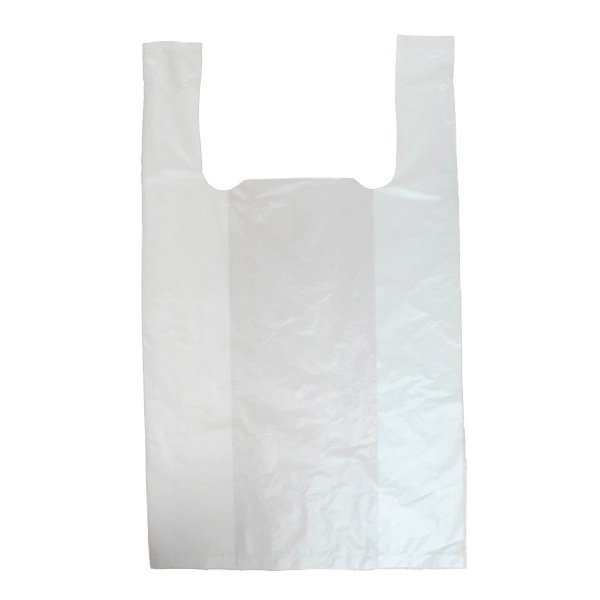 Полиэтиленовые пакеты майка ПНД, белого цвета, без надписей, длиной 45 см, шириной 25+12 см, толщиной 9 мкм, в упаковке 100 штук. Материал – полиэтилен низкого давления. Производятся в России.