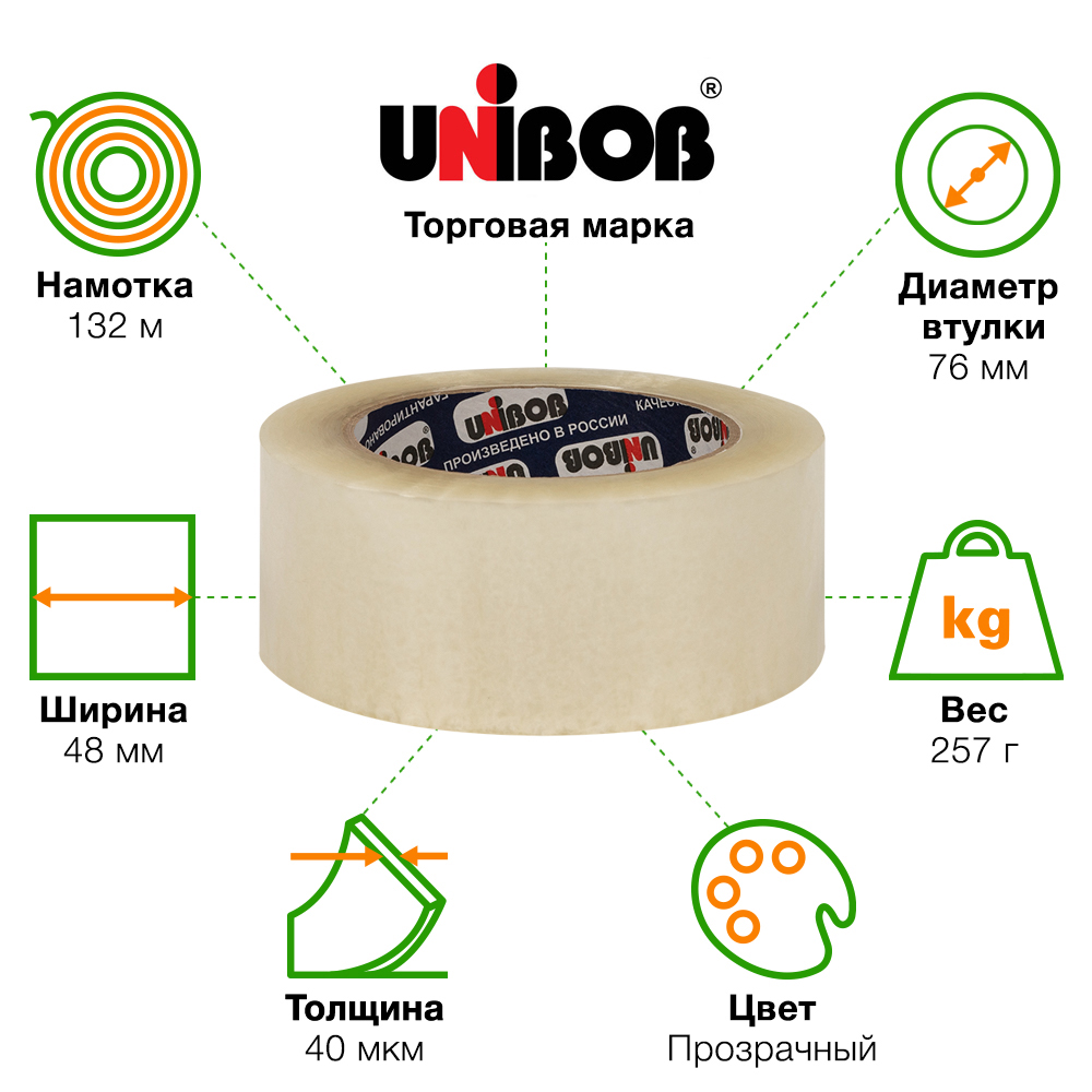 Клейкая лента прозрачная Unibob®, 48мм*132м*40мкм