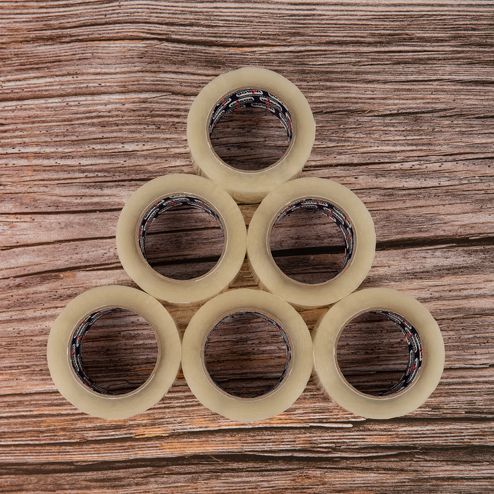В спайке полиэтиленовой пленкой - 6 роликов скотча, в одной коробке - 36 роликов (6 спаек по 6 роликов).