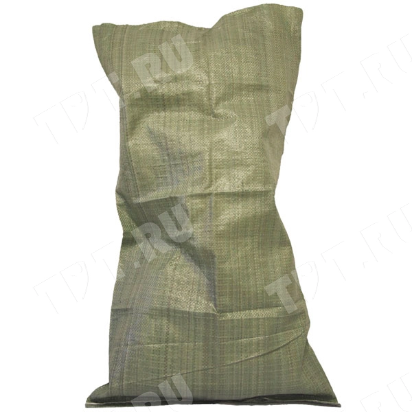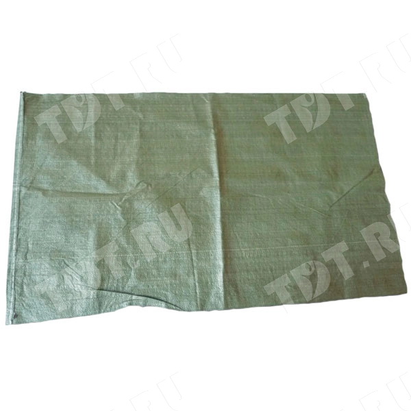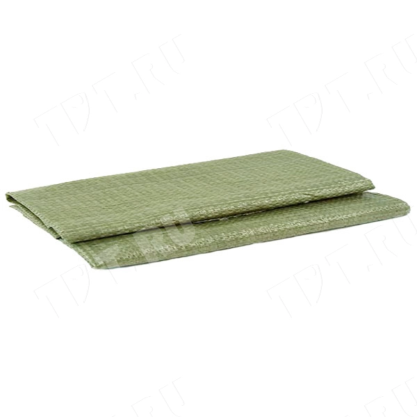 Полипропиленовый мешок, зеленого цвета, длиной 130 см, шириной 90 см, весом 90 г. Материал – полипропилен (ПП). Производится в России.