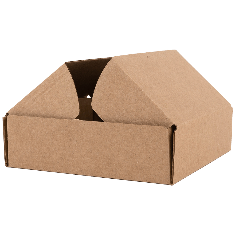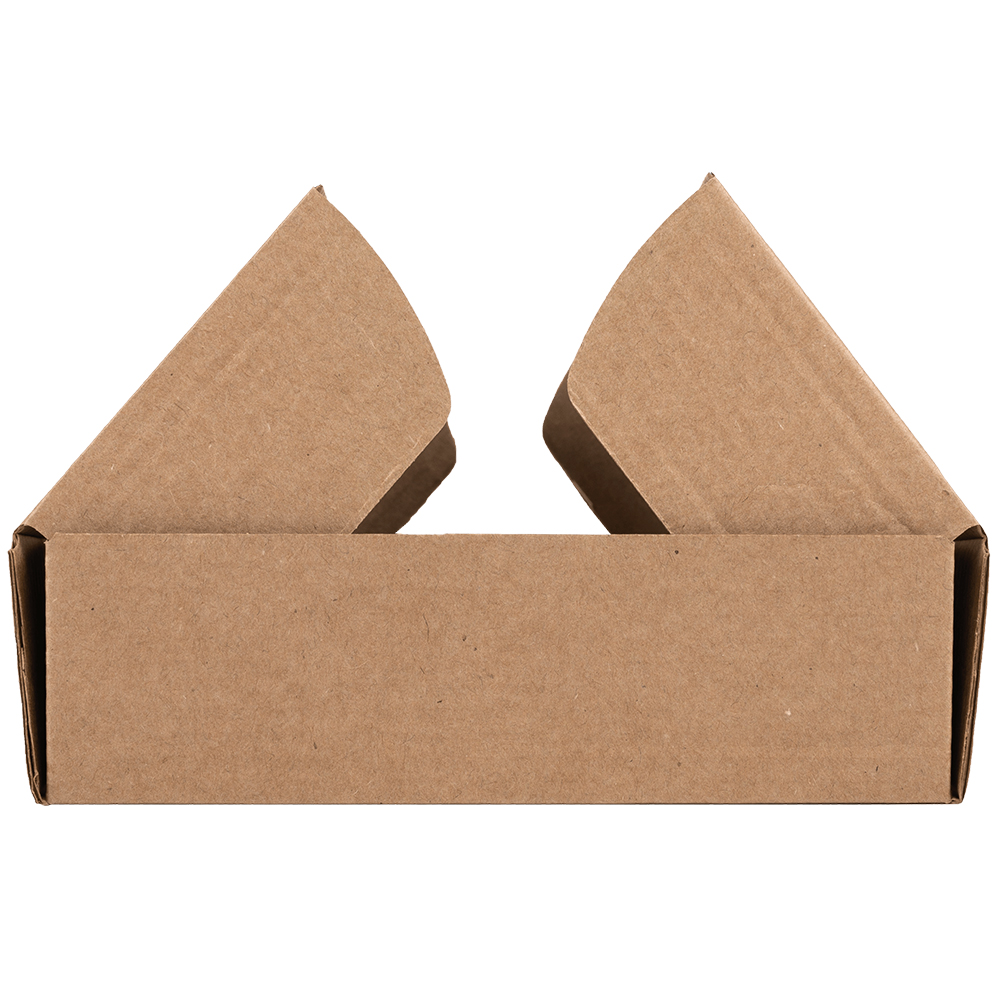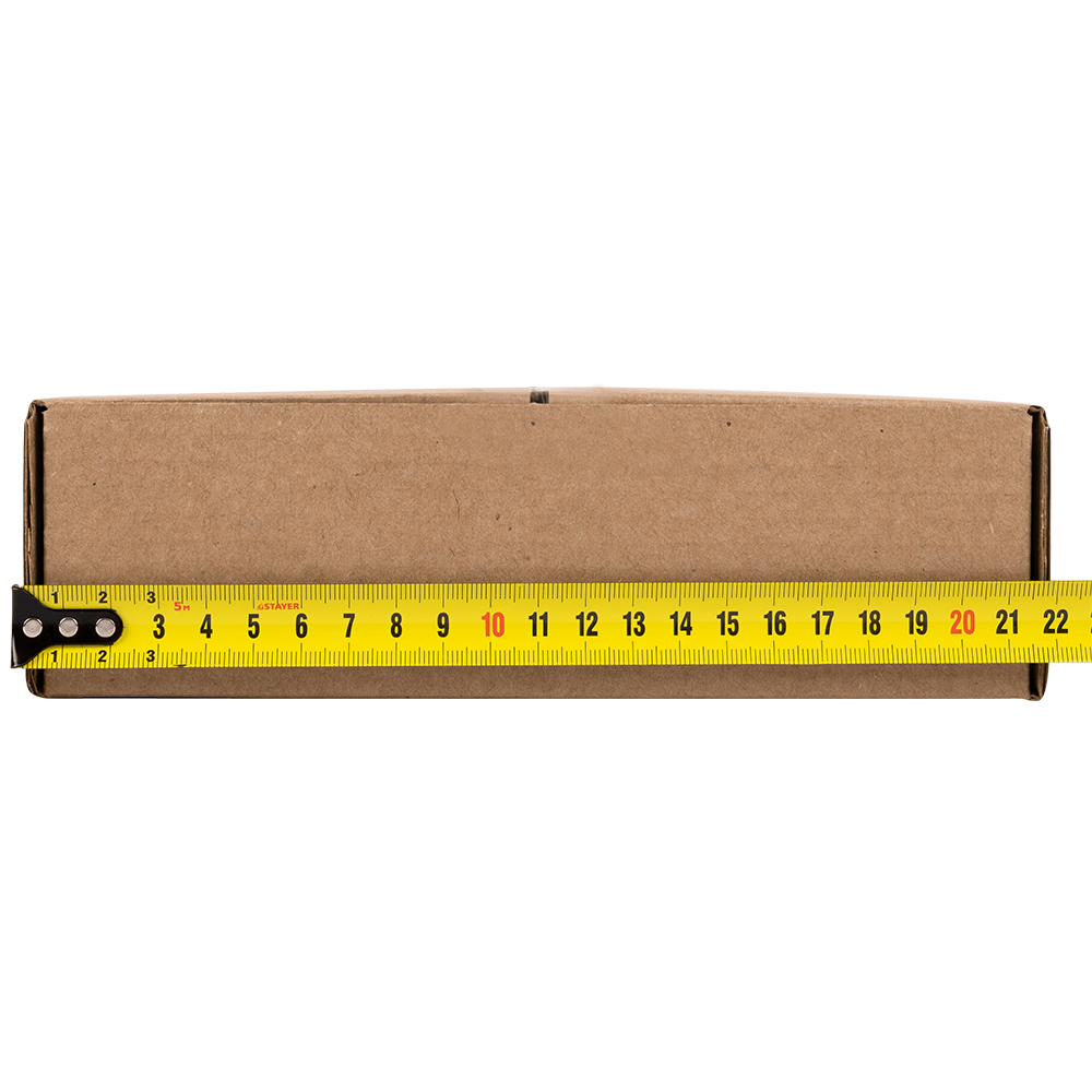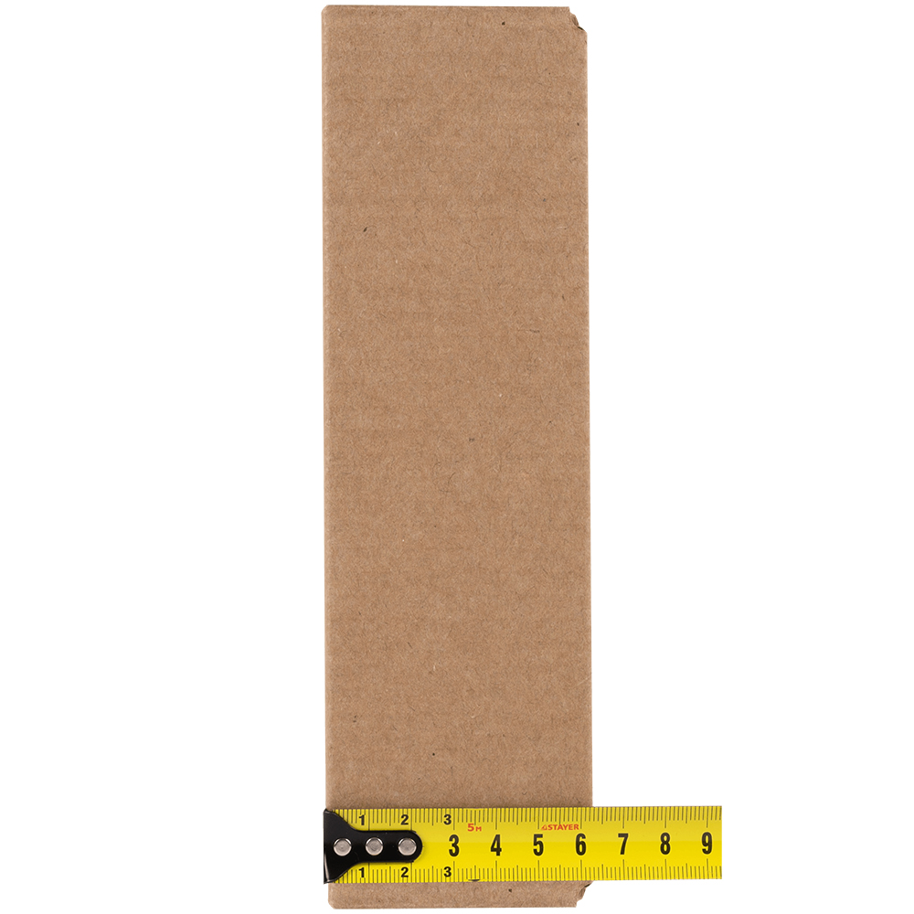 Книжный лоток №2, бурый, длиной 210 мм, шириной 205 мм и высотой 60 мм. Изготовлен из трёхслойного картона Т-23 В. Полезный объём — 2.6 л.