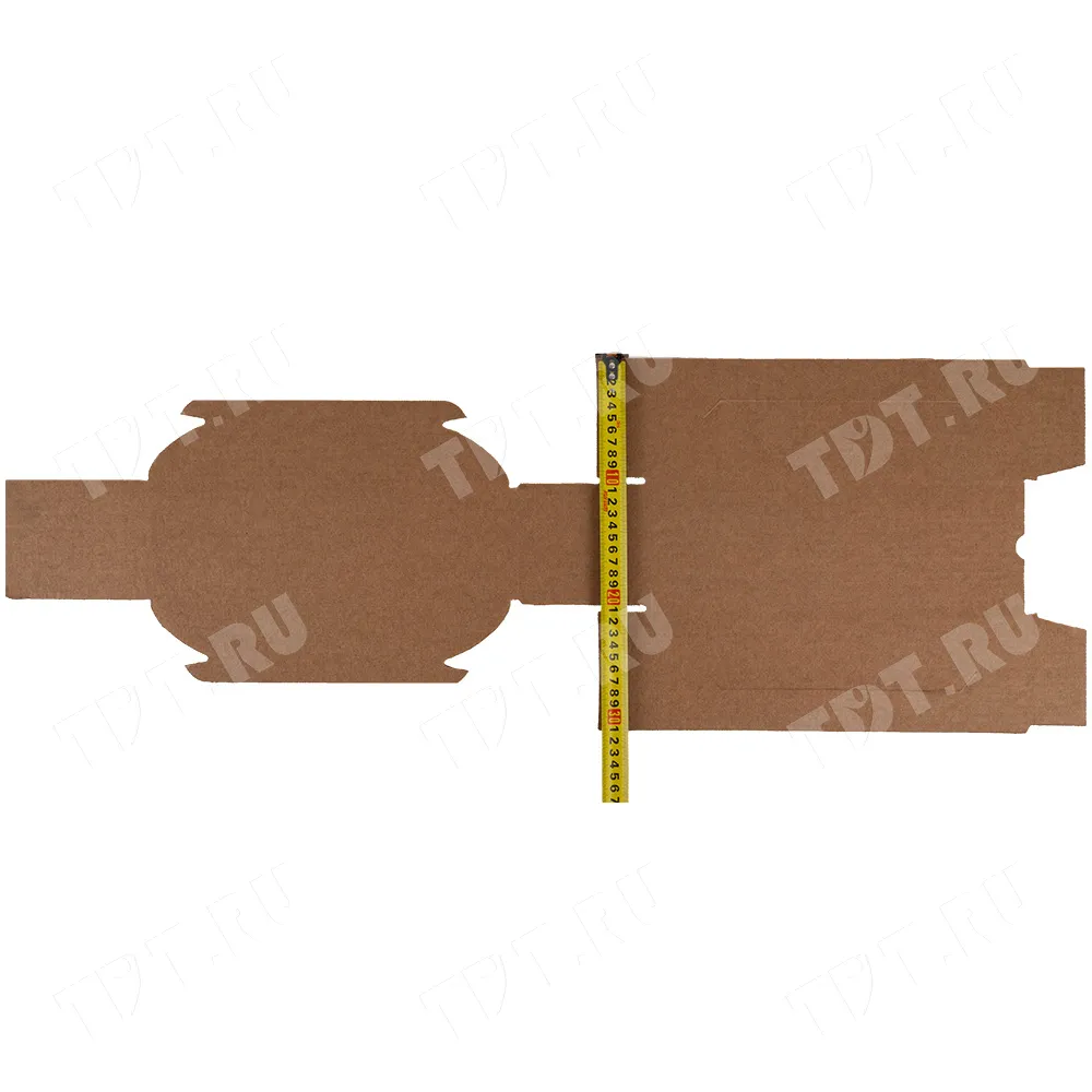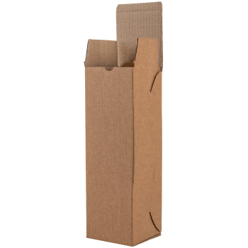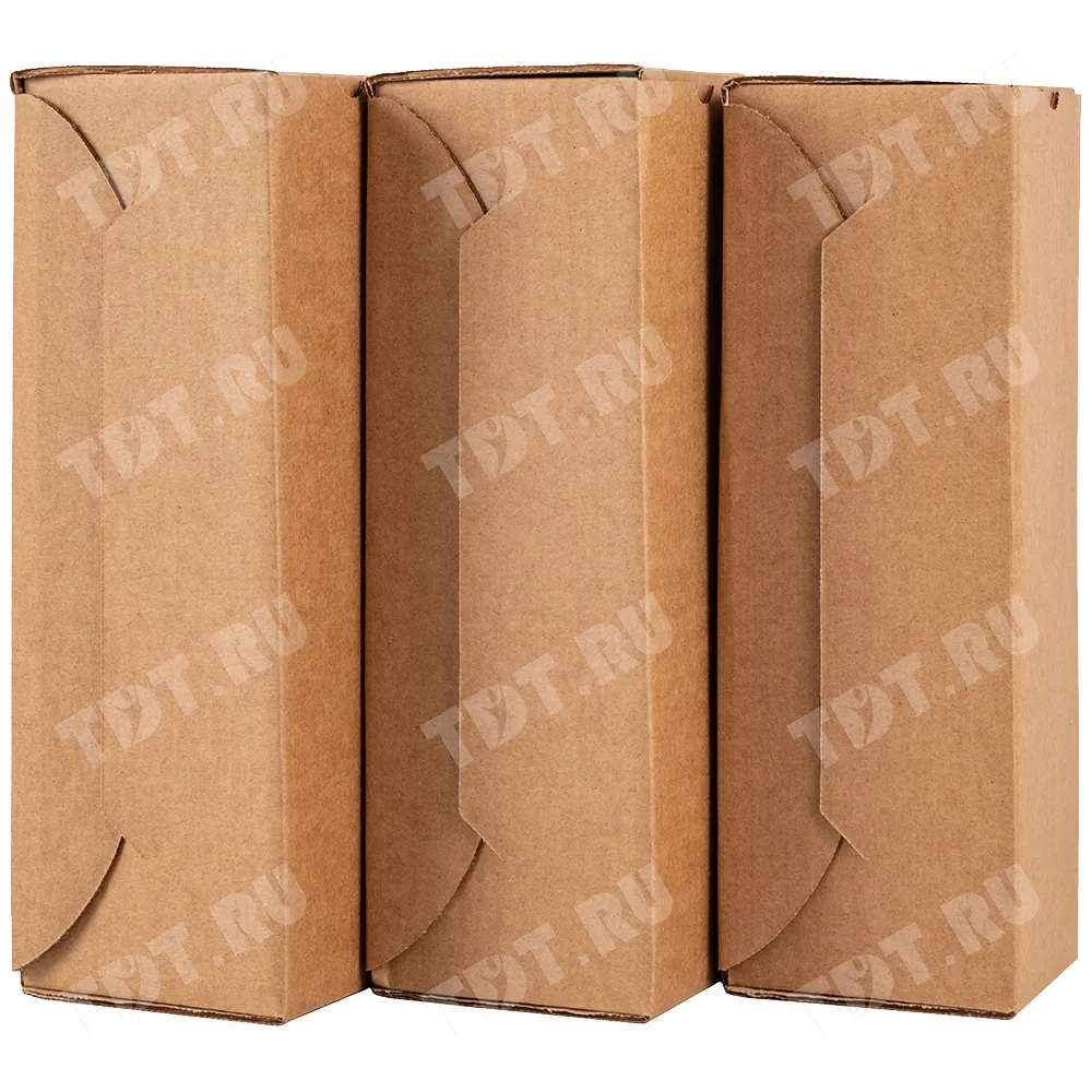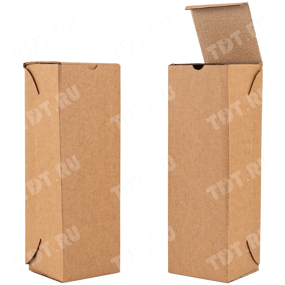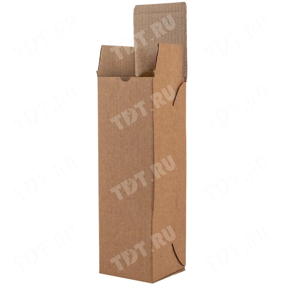 Коробка для бутылки №95, бурая, длиной 100 мм, шириной 100 мм и высотой 310 мм. Изготовлена из трёхслойного картона Т-24 В. Полезный объём — 3.1 л.