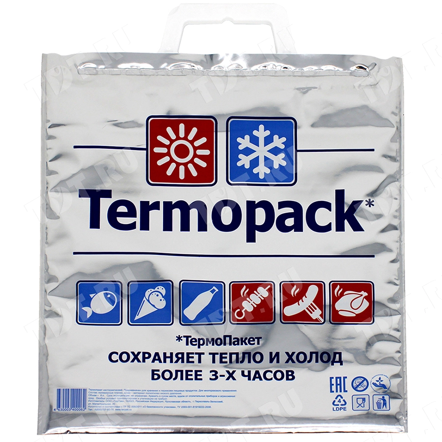 Термопакет Премиум Терпак для хранения продуктов с усиленной клипсой-защелкой, шириной 420 мм, высотой 450 мм, объемом 15 л, грузоподъемностью до 10 кг. Многоразовый термопакет сохраняет холод до 6 часов. Производится в России.