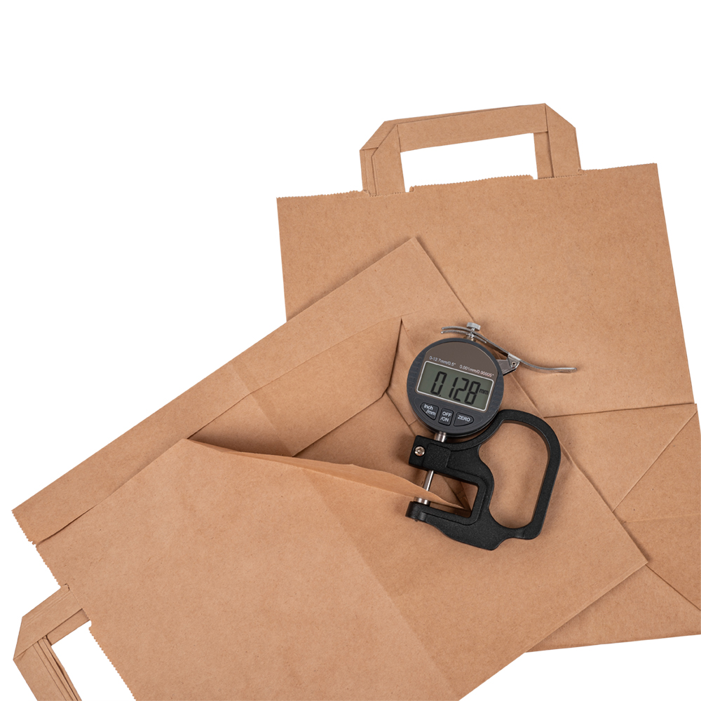 Крафт пакет отлично держит форму, дно и боковины качественно склеены.