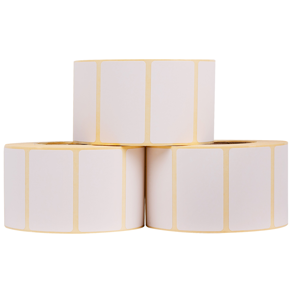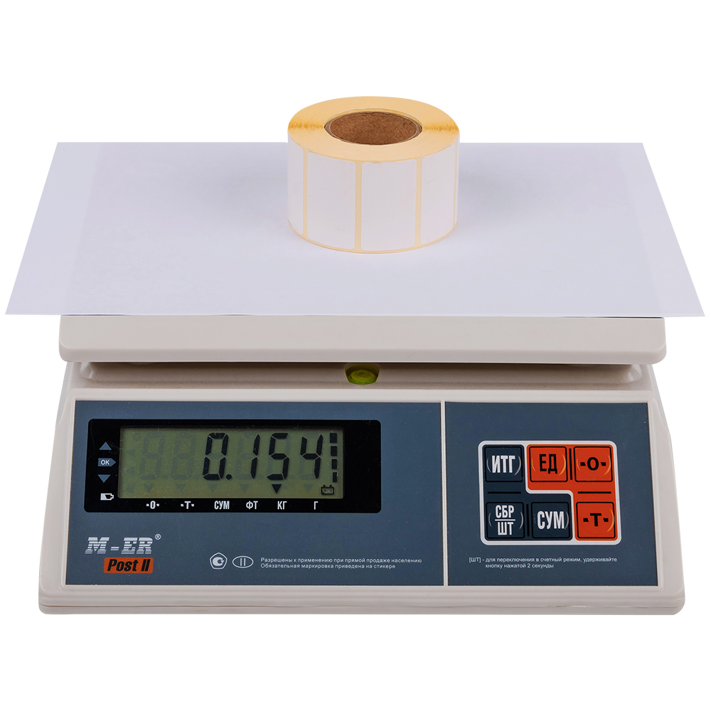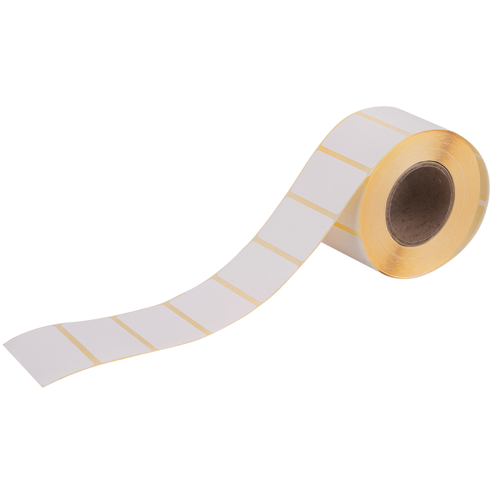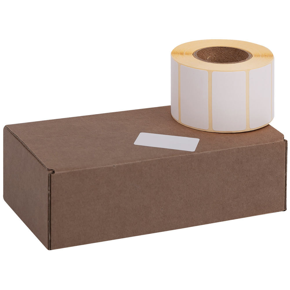 Самоклеящиеся этикетки ЭКО из матовой бумаги белого цвета, шириной 43 мм, высотой 25 мм, диаметром втулки 40 мм, количеством в рулоне по 1000 штук. Производятся в России. Термоэтикетки ЭКО в рулонах предназначены для печати на принтерах без риббона. На этикетках есть специальный слой, который при нагреве термоголовки принтера темнеет, за счет этого происходит печать.