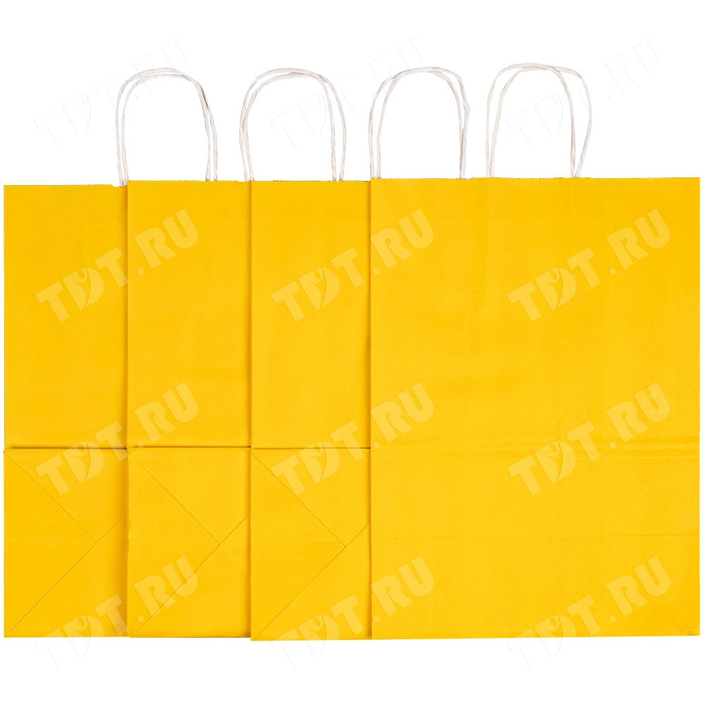 Пакеты с крученой ручкой используются для упаковки, переноски подарков. Отличаются ярким жёлтым цветом.