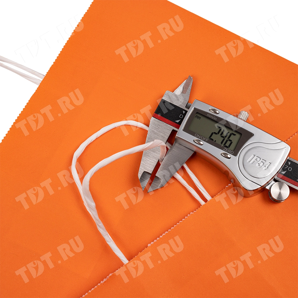 Оранжевый бумажный крафт пакет с крученой ручкой шириной 110 мм, длиной 250 мм, высотой 320 мм изготовлен из экологичного материала. Пакеты производятся в России.