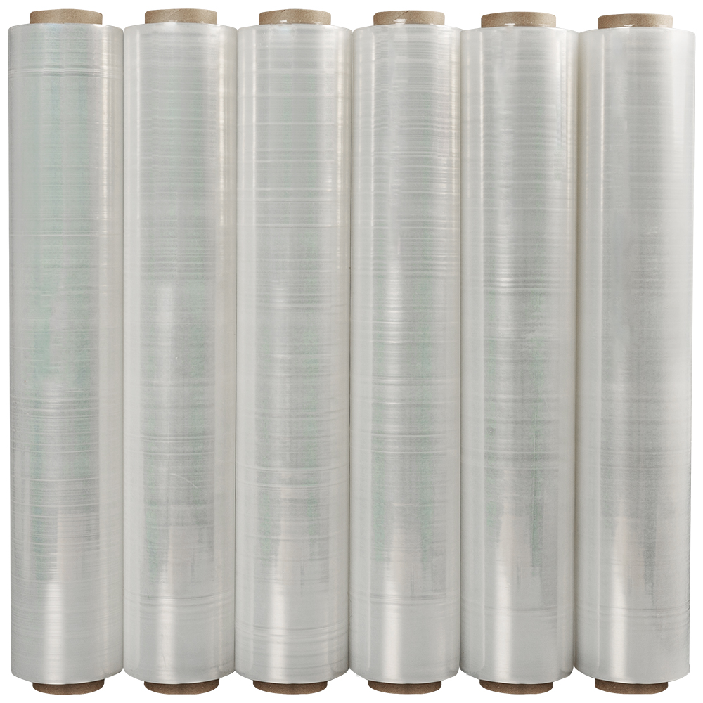 Прозрачная паллетная стрейч пленка, первого сорта, намоткой 217 м, шириной 500 мм, толщиной 20 мкм. Изготовлена из первичных гранул LLDPE. Производится в России.