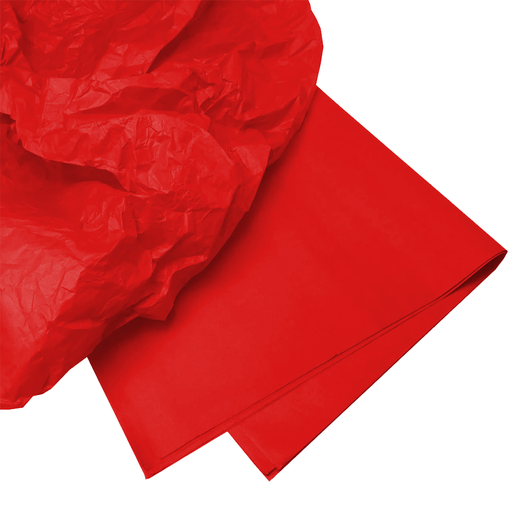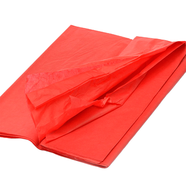 Красная бумага тишью шириной 50 см, длиной 66 см, плотностью 20 г/м² по 10 листов в упаковке. Шероховатая упаковочная бумага для оформления и украшения подарков.