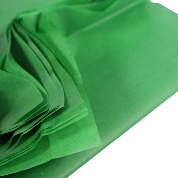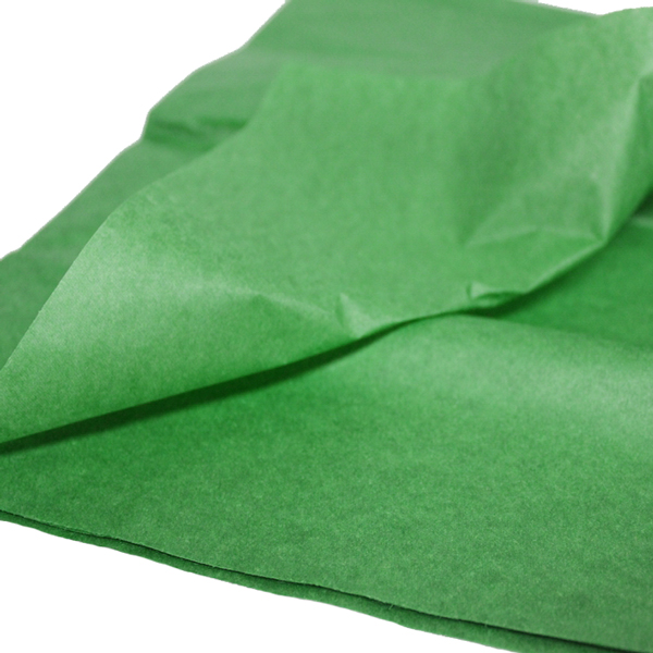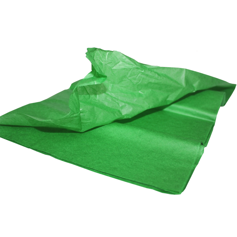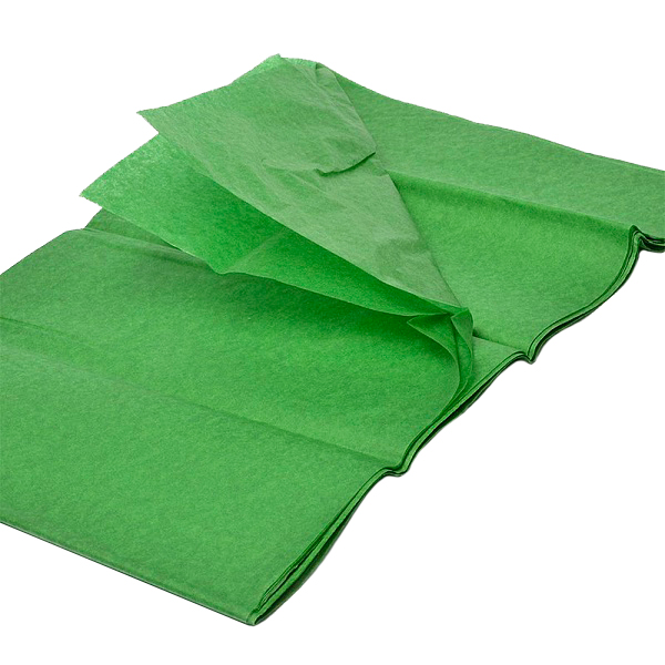 Зелёная бумага тишью шириной 50 см, длиной 66 см, плотностью 20 г/м² по 10 листов в упаковке. Шероховатая упаковочная бумага для оформления и украшения подарков.