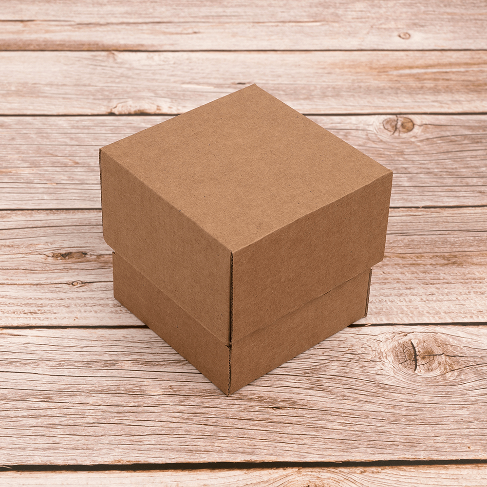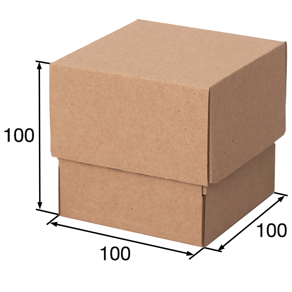 Коробка крышка-дно «Кубик» бурого цвета, серия КС-600, длиной 100 мм, шириной 100 мм и высотой 100 мм. Изготовлена из микрогофрокартона Т-23 Е. Полезный объём — 1 л.