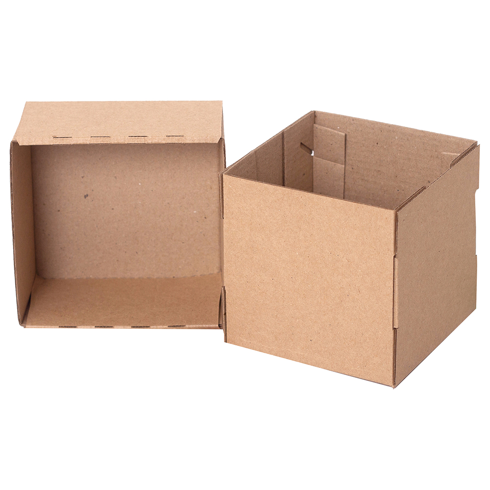 Коробка крышка-дно «Кубик» бурого цвета, серия КС-600, длиной 140 мм, шириной 140 мм и высотой 140 мм. Изготовлена из микрогофрокартона Т-23 Е. Полезный объём — 2.7 л.