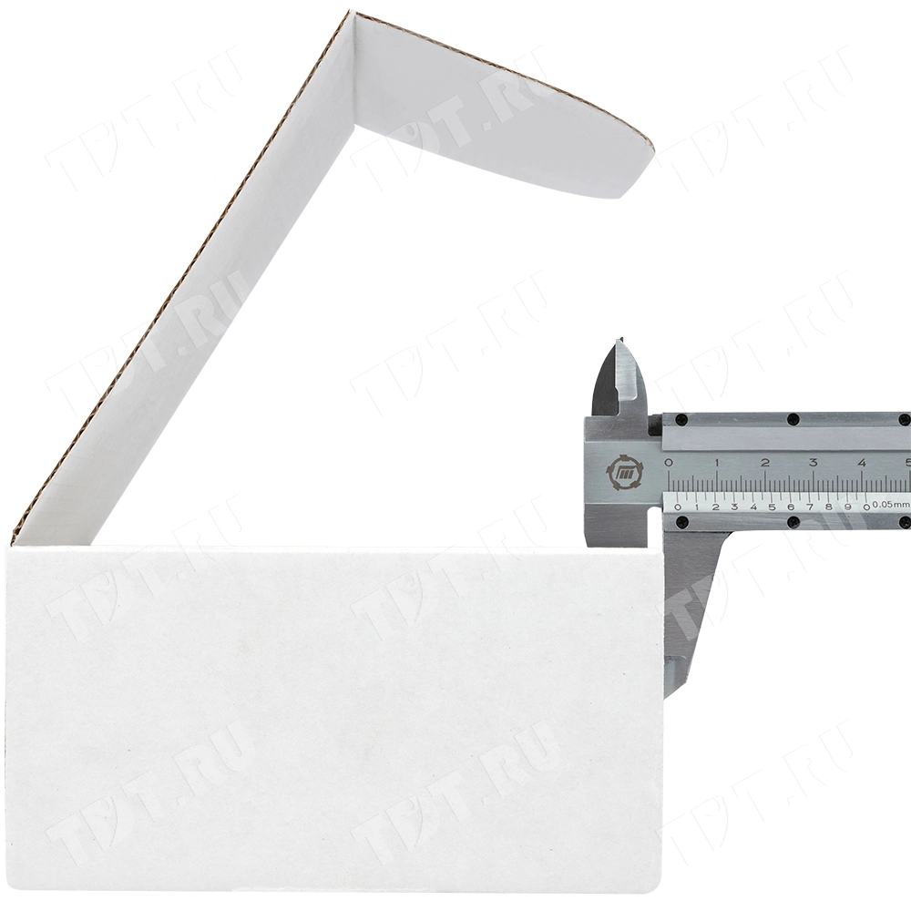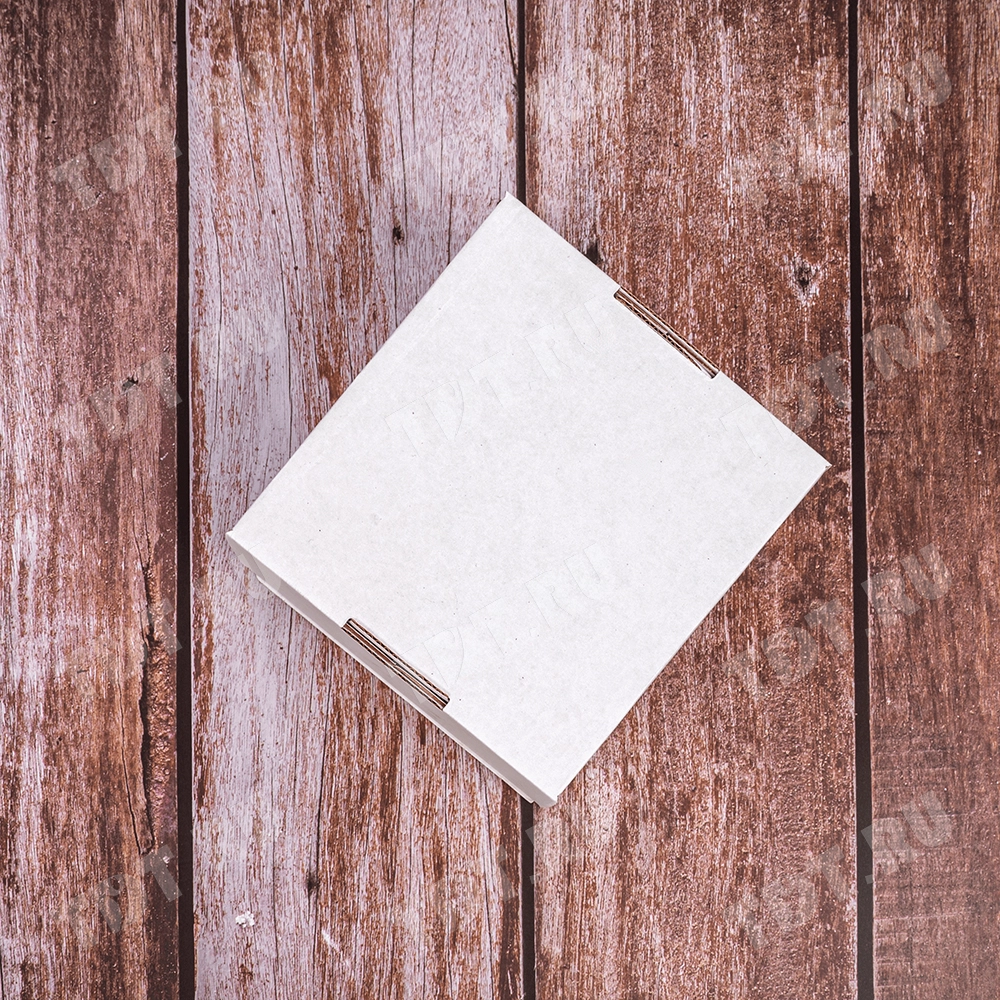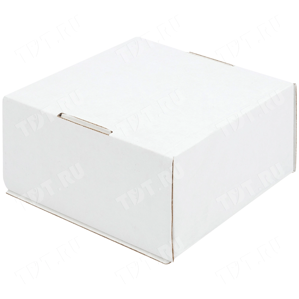 Короб КС-410 МГФ, серии КС-400, белый, длиной 130 мм, шириной 130 мм и высотой 70 мм. Изготовлен из микрогофрокартона Т-23. Полезный объём — 1.15 л.