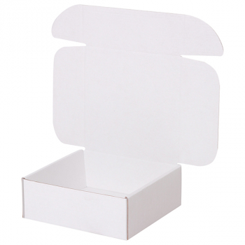 Короб КС-413 МГФ, серии КС-400, белый, длиной 160 мм, шириной 160 мм и высотой 60 мм. Изготовлен из микрогофрокартона Т-23. Полезный объём — 1.5 л.
