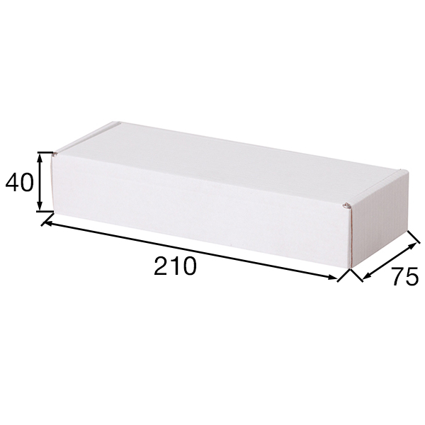 Короб КС-428 МГФ, серии КС-400, белый, длиной 210 мм, шириной 75 мм и высотой 40 мм. Изготовлен из микрогофрокартона Т-23. Полезный объём — 0.6 л.