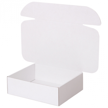 Короб КС-430 МГФ, серии КС-400, белый, длиной 235 мм, шириной 200 мм и высотой 75 мм. Изготовлен из микрогофрокартона Т-23. Полезный объём — 3.5 л.