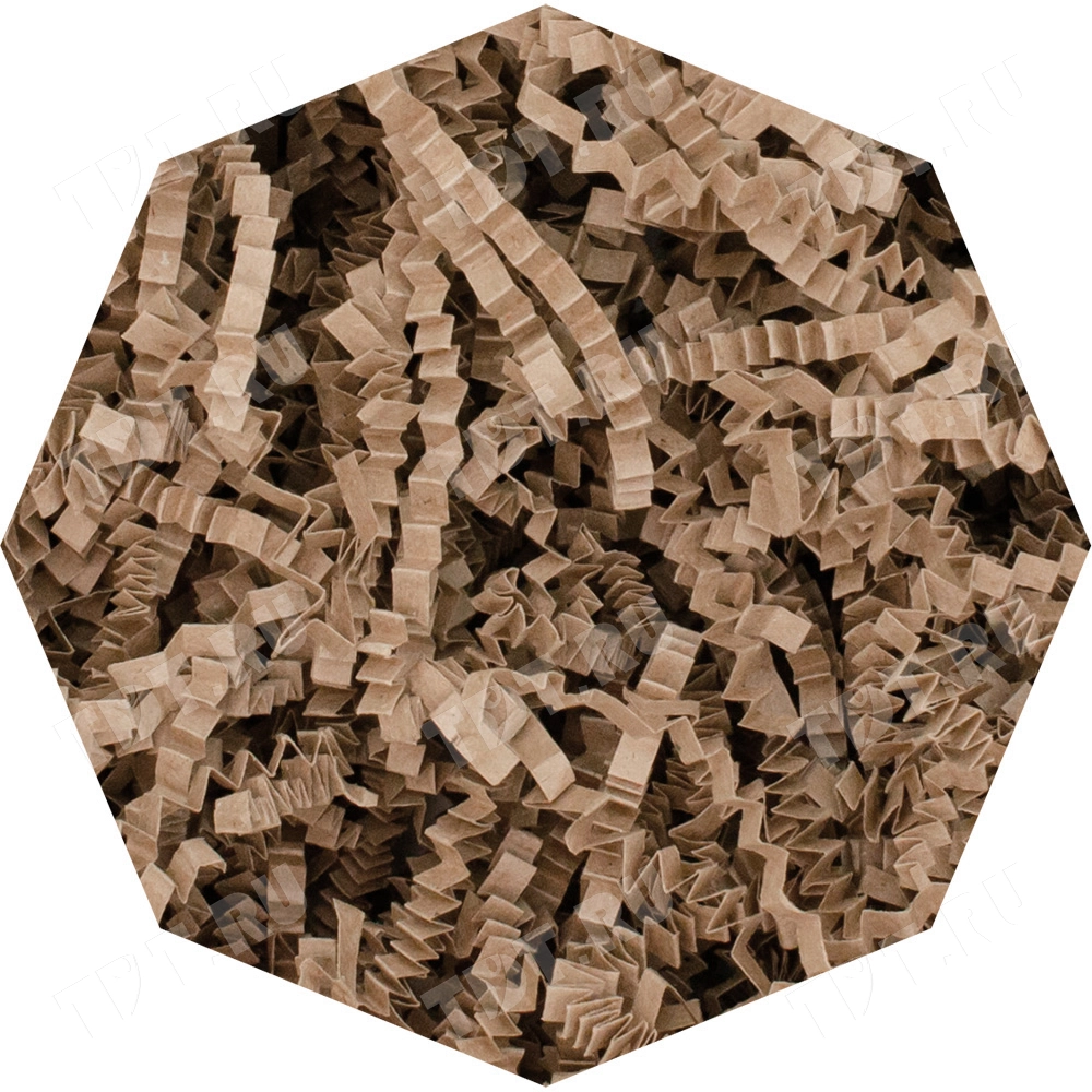 Бумажный подарочный наполнитель «Крафт» из простой бумаги, крафтового цвета, весом 1 кг, плотностью 80 г/м², шириной резки 2-3 мм. Производится в России.