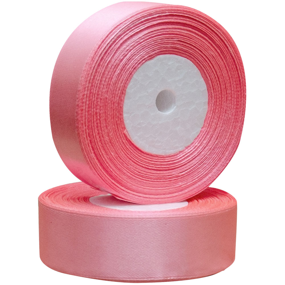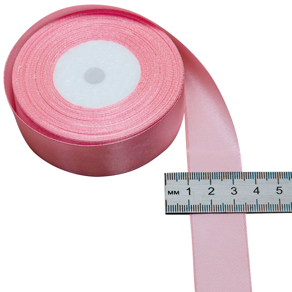Атласная лента розового цвета, шириной 25 мм, намоткой 25 метров. Шелковые ленты предназначены для отделки и декорирования изделий из ткани, оформления праздничных мероприятий, упаковки подарков и цветов.