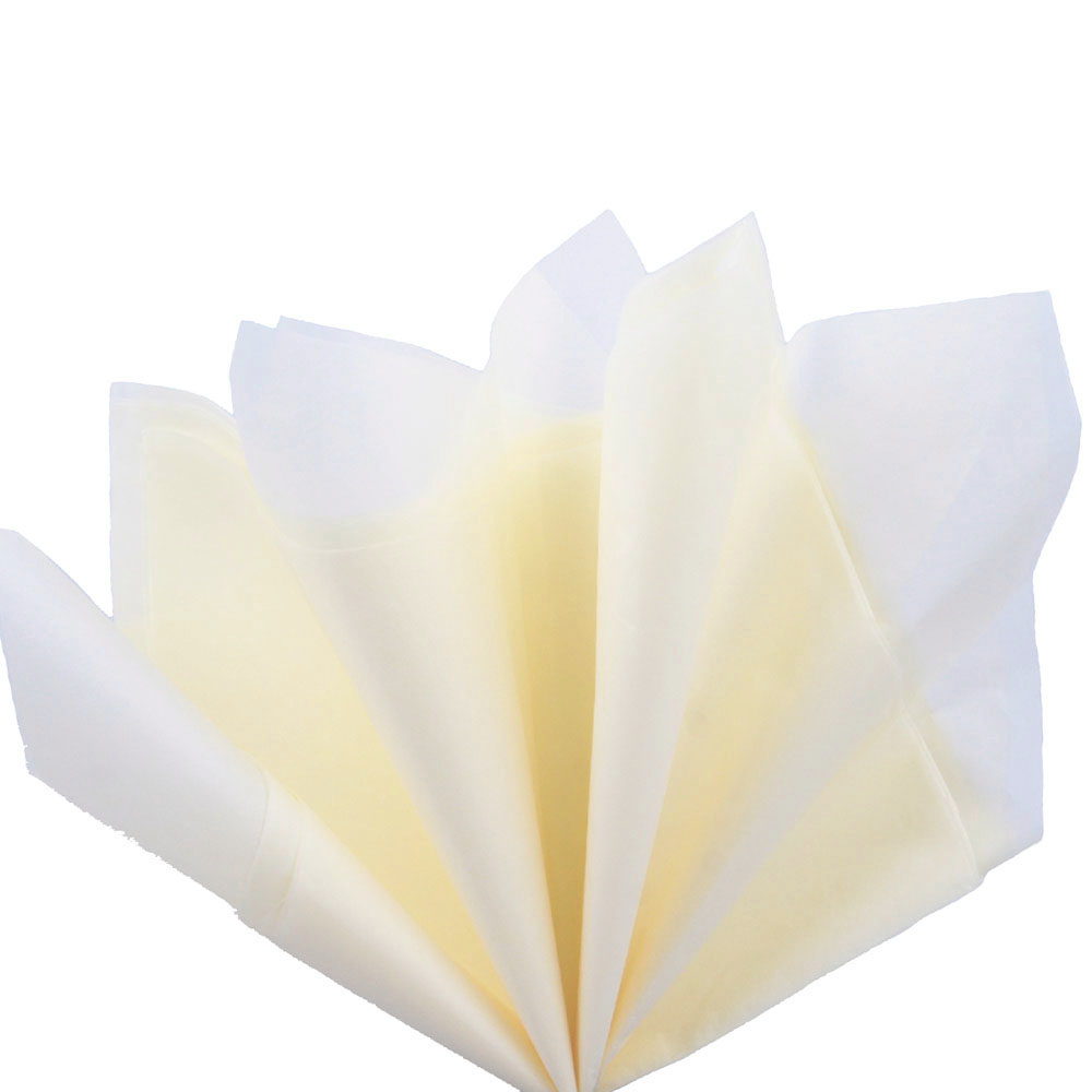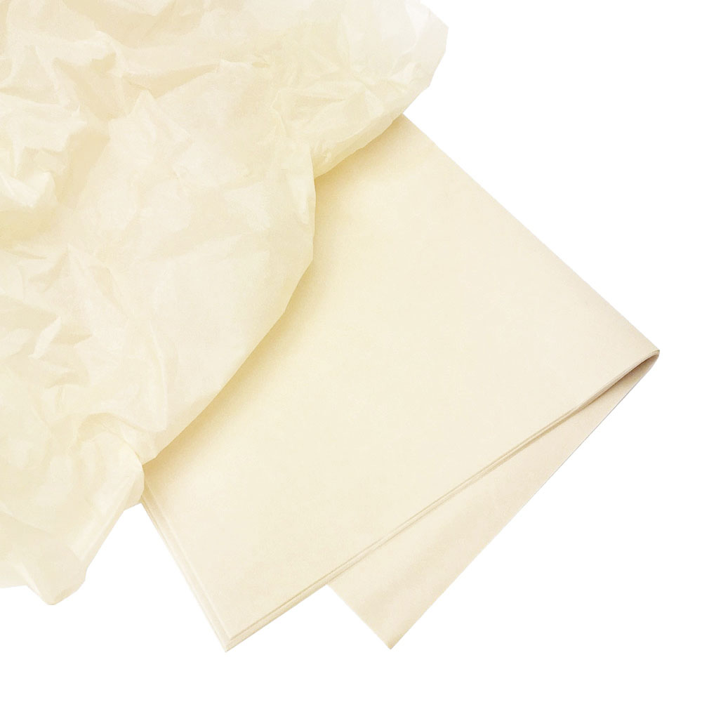 Кремовая бумага тишью шириной 50 см, длиной 66 см, плотностью 20 г/м² по 10 листов в упаковке. Шероховатая упаковочная бумага для оформления и украшения подарков.