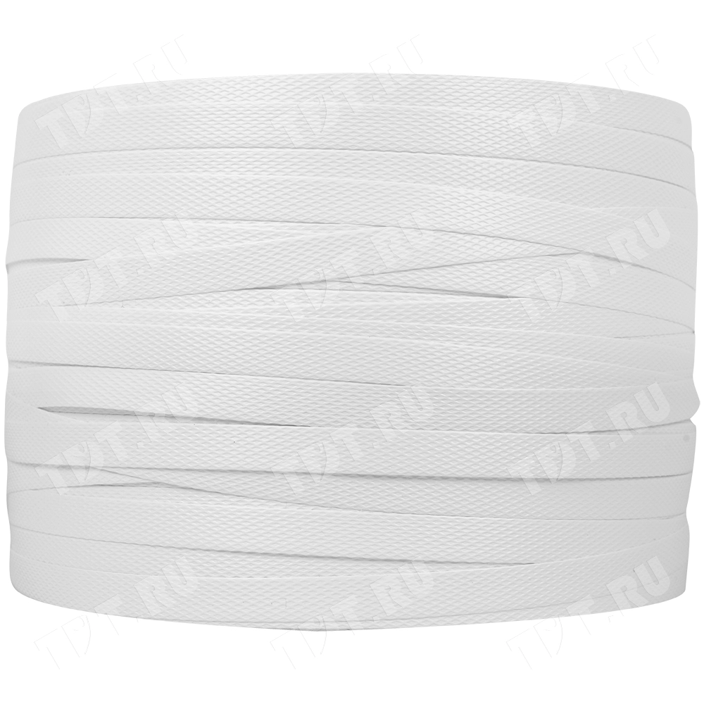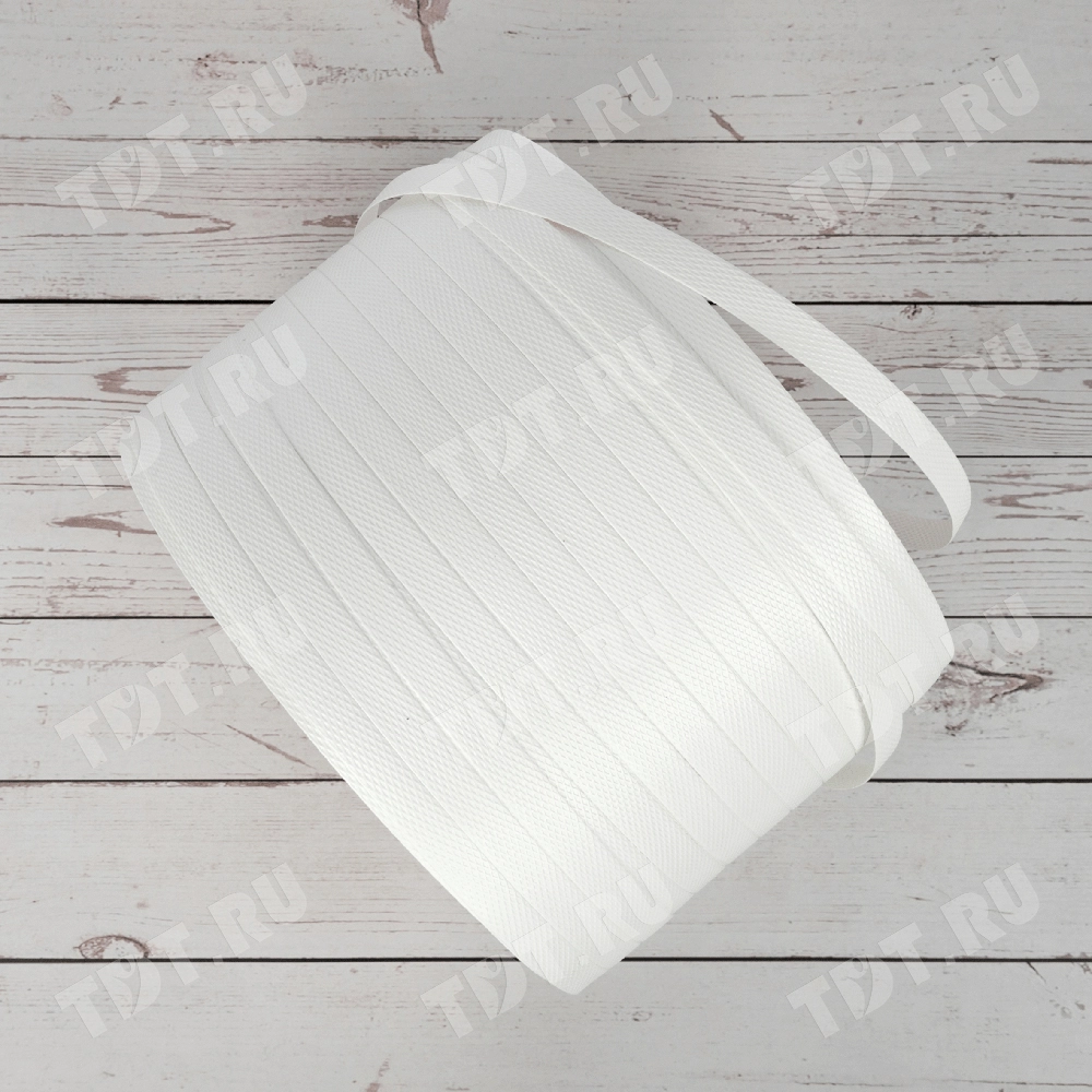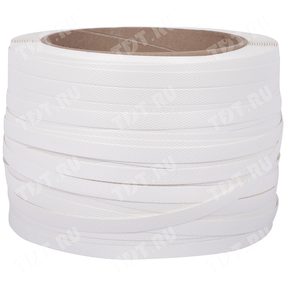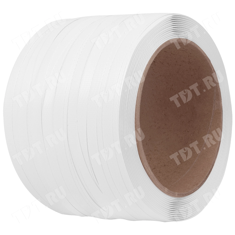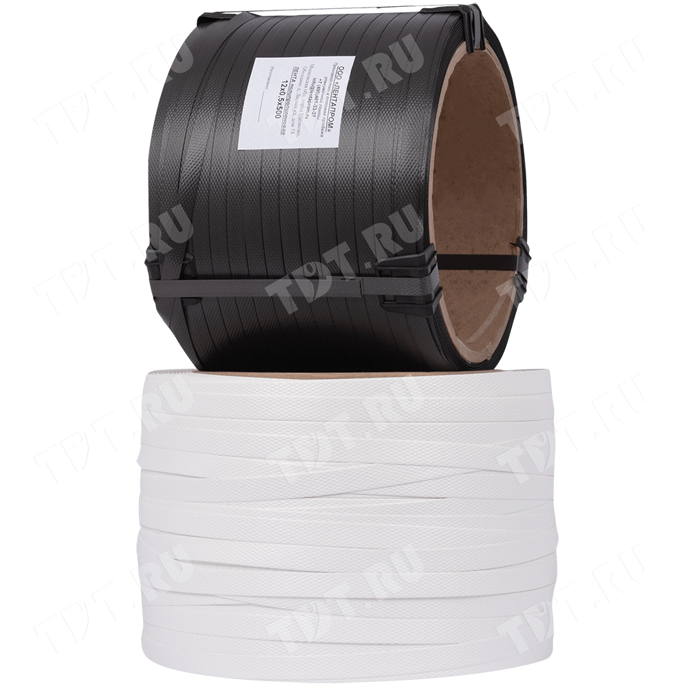 Упаковочная полипропиленовая лента (ПП) Лентапром, белого цвета, намоткой 500 м, шириной 12 мм, толщиной 0,5 мм, усилием на разрыв 120 кГс, весом 2.281 кг, транспортировочным объемом 0.0111 м³. Диапазон рабочих температур от -30 до +60°C. Производится в России.