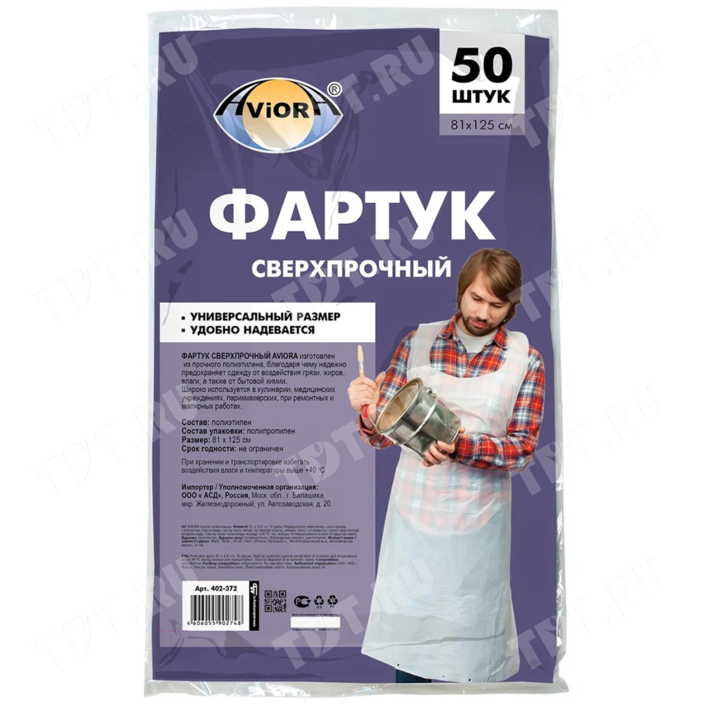 Одноразовые сверхпрочные полиэтиленовые фартуки Aviora, прозрачного цвета, длиной 125 см, шириной 81 см, в упаковке по 50 шт.