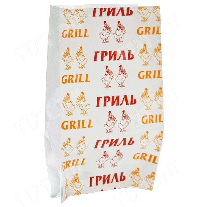 Ламинированный бумажный пакет для кур-гриль, белый с рисунком, 300*190+60 мм, 200 шт.
