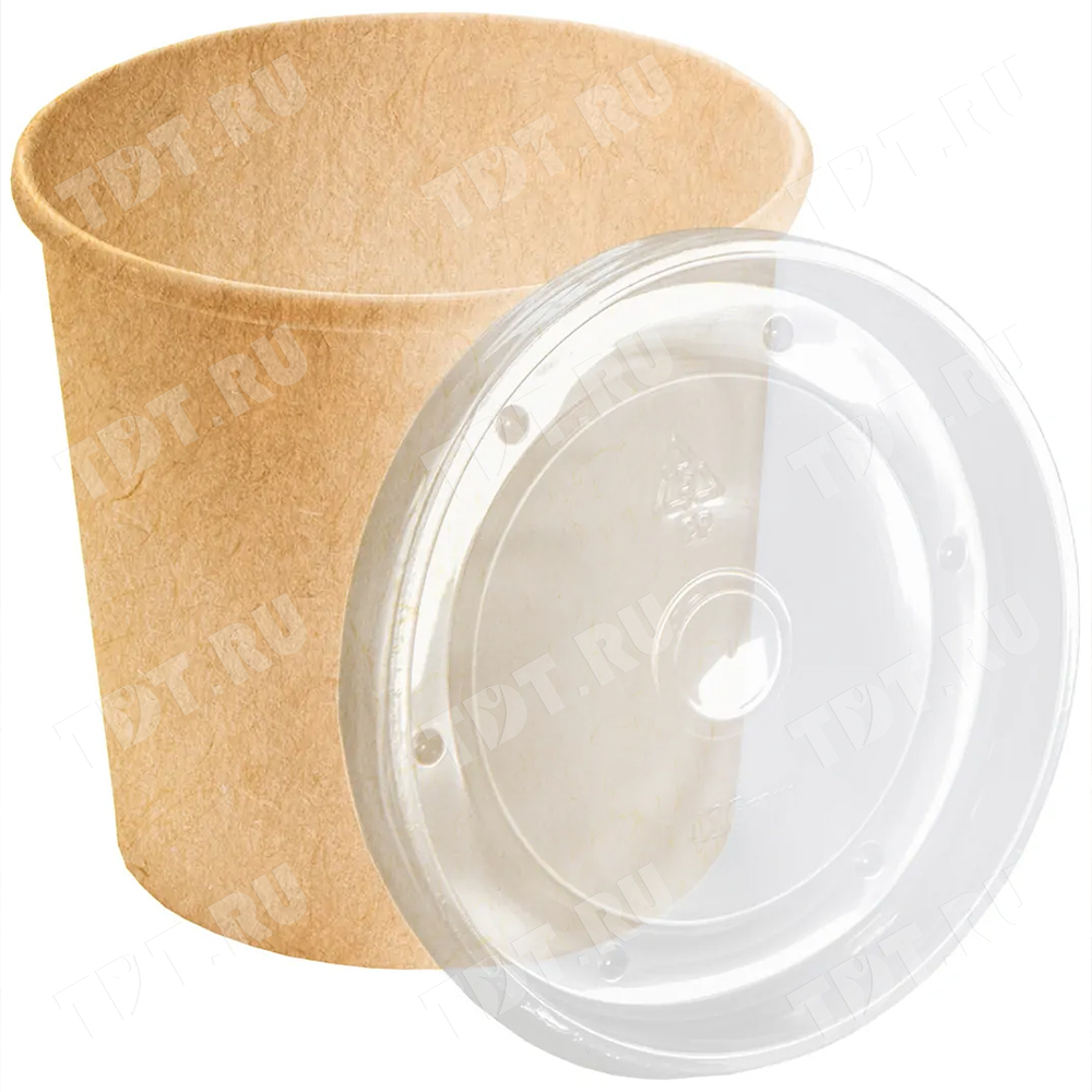 Супница с ПП крышкой, крафт, 1000 мл, 25 шт.