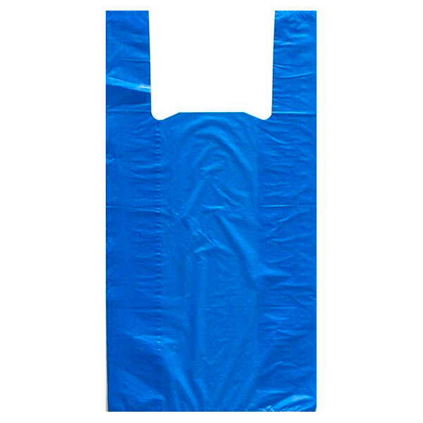 Полиэтиленовые пакеты майка ПНД, голубого цвета, длиной 45 см, шириной 25+12 см, толщиной 9 мкм, в упаковке 100 штук. Материал – полиэтилен низкого давления. Производятся в России.