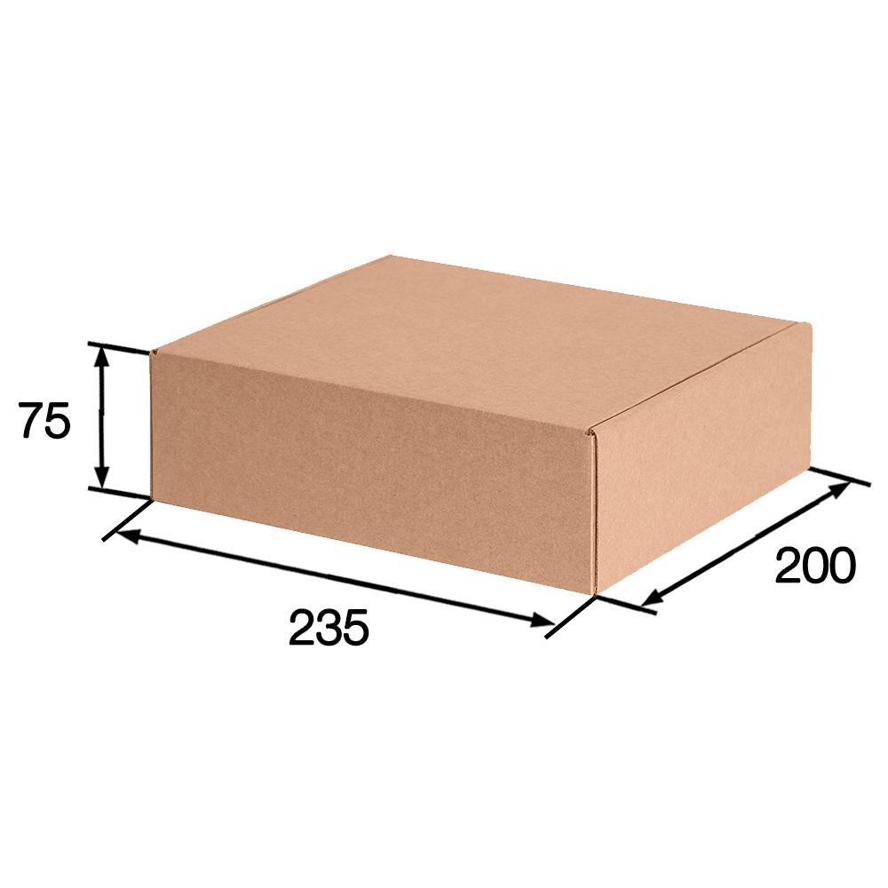 Короб КС-630 МГК, серии КС-600, бурый, длиной 235 мм, шириной 200 мм и высотой 75 мм. Изготовлен из микрогофрокартона Т-23. Полезный объём — 3.5 л.