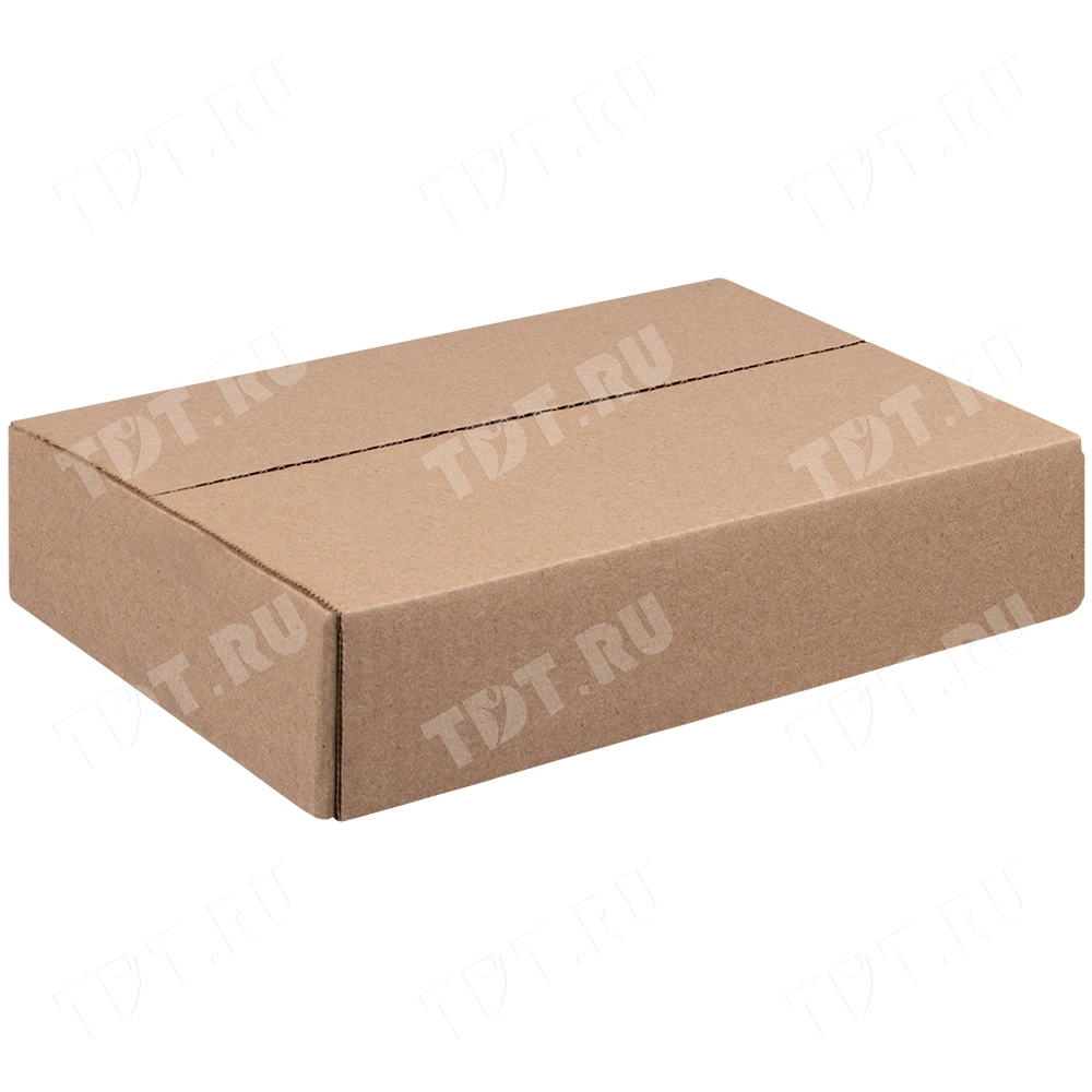 Короб «PROБизнес» №4-МК бурого цвета, длиной 270 мм, шириной 165 мм и высотой 50 мм. Изготовлен из трехслойного картона марки Т-22 В. Полезный объём — 2.23 л.