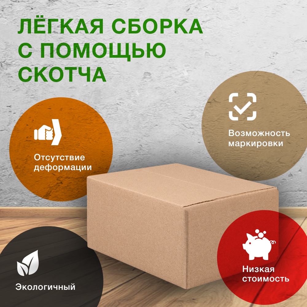 Область применения:Аналог почтового короба типа «Д». Изготовлен из макулатуры, поэтому более экологичен, но менее пригоден для повторного использования. Предназначен для пересылки товаров почтой или отправки заказов через маркетплейсы. В него поместятся канцтовары (скотч, клей-карандаш, канцелярский нож или степлер), косметика, лекарства или подарочные сувениры. Если вы приобретаете больше одной коробки, рекомендуем маркировать их с помощью стикеров или маркеров, чтобы не забыть, какие товары находятся в каждой из них.