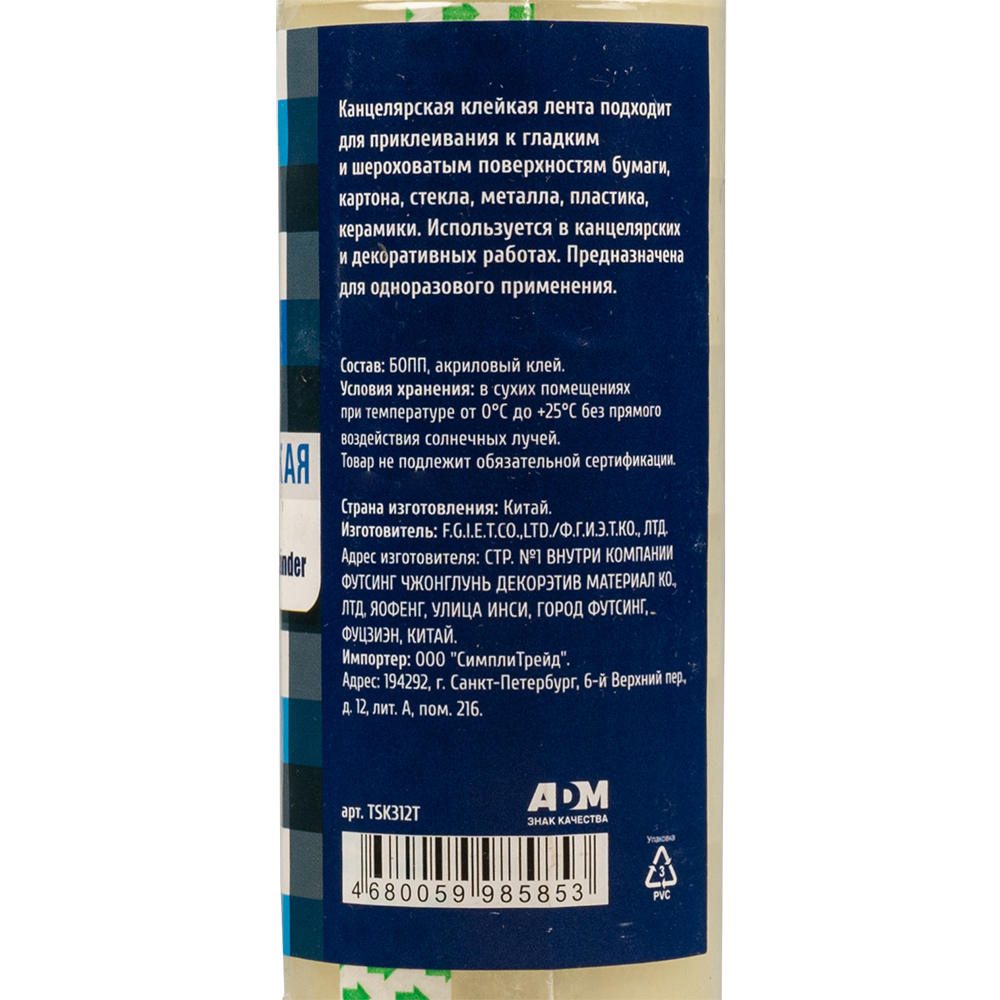 Область применения:Применяется для офисных и домашних нужд, а также для небольшого ремонта. Лента идеально подходит для заклеивания стыков бумажных листов или порванных частей. Ленту можно использовать в узких местах, для упаковки небольших коробок, пакетов, приклеивания плакатов, рекламных материалов, записок и других бумаг.