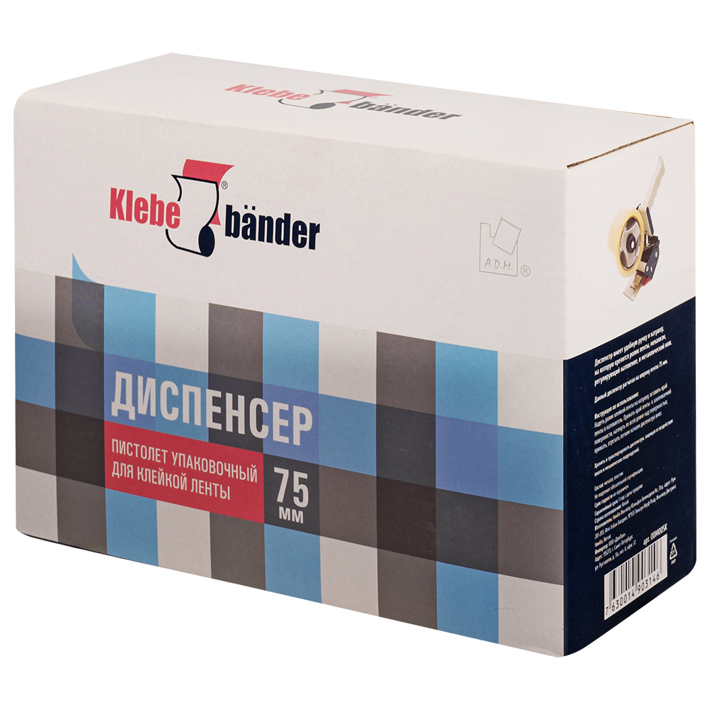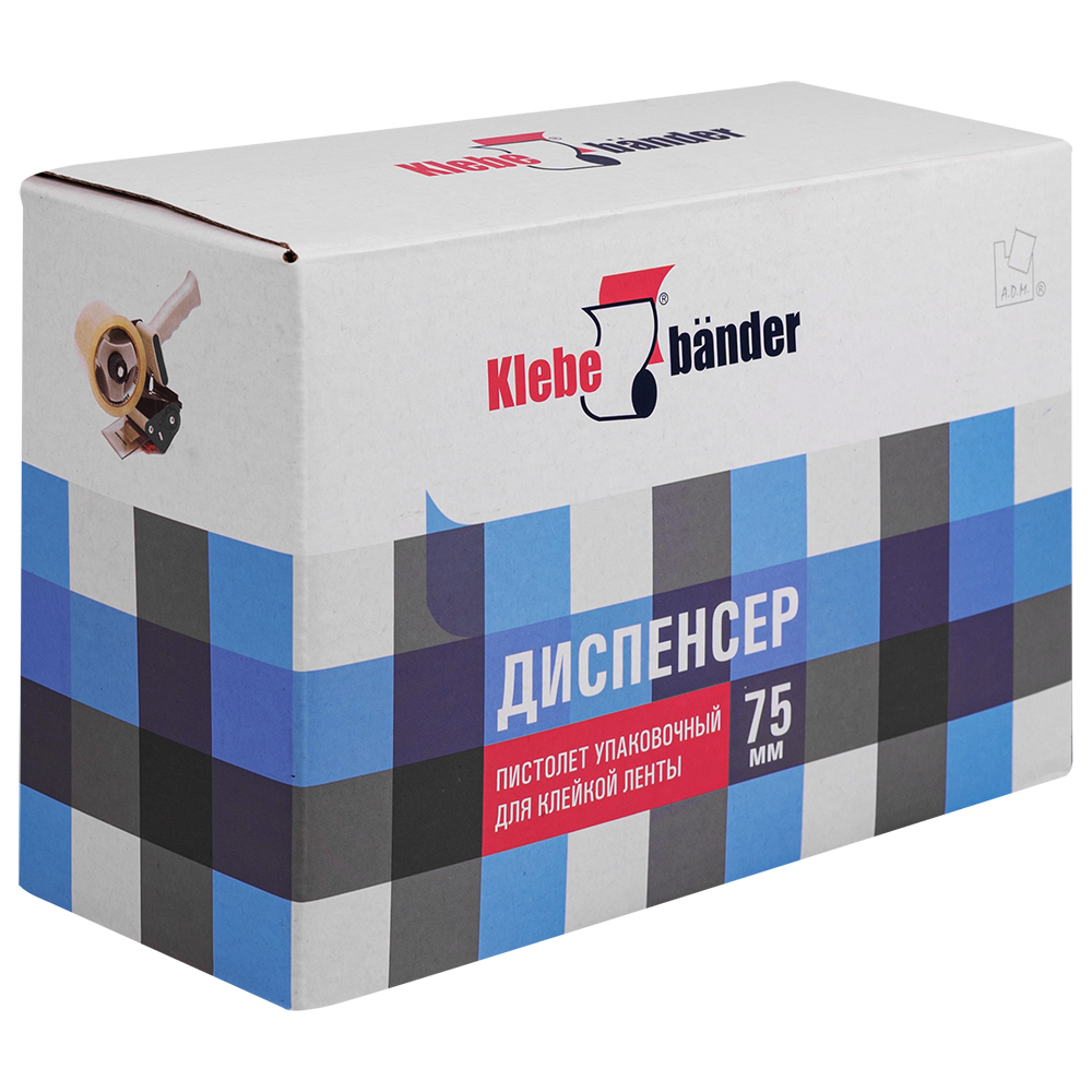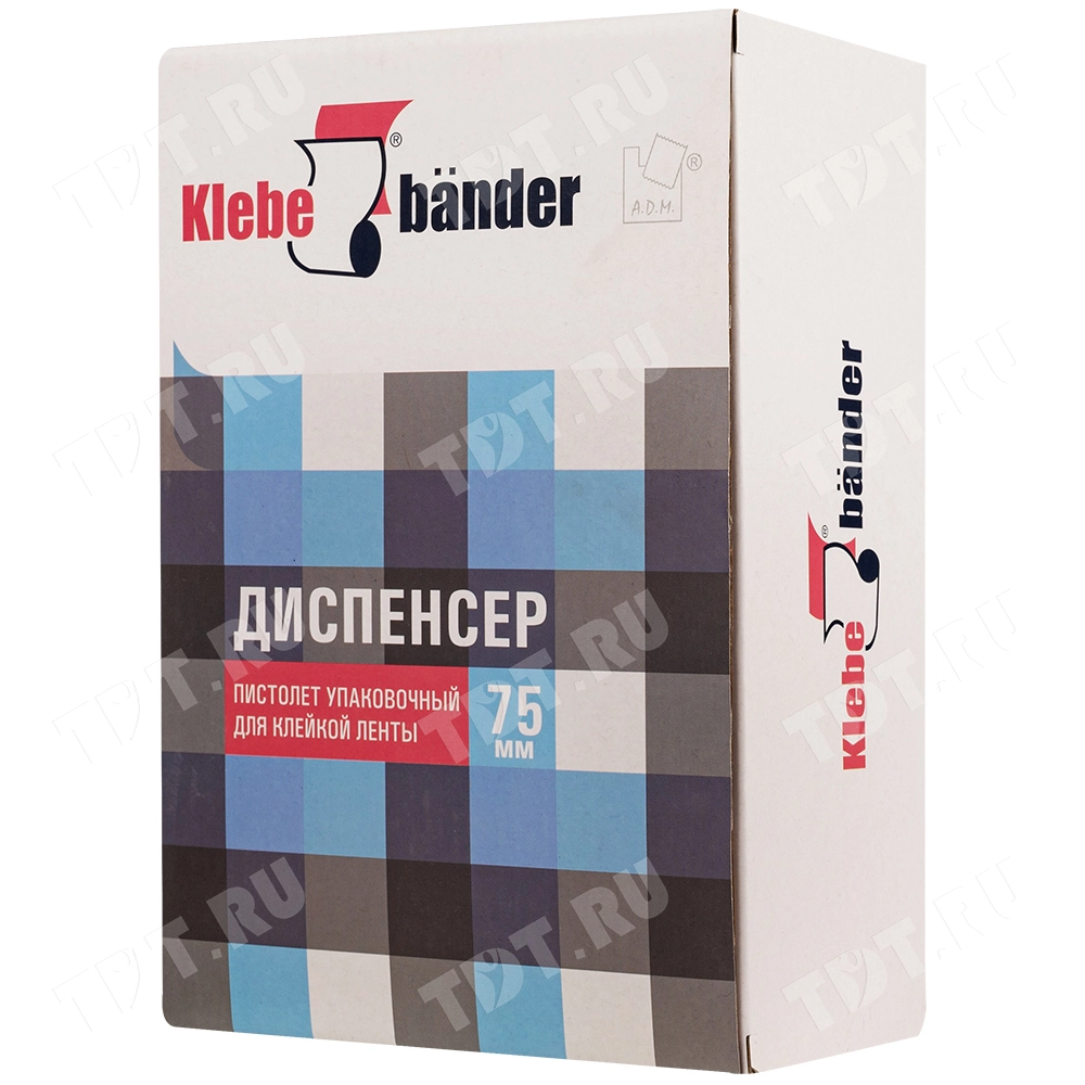 Устройство для повышения скорости и удобства ручной заклейки коробов. Диспенсер Klebebander уже содержит встроенный нож для обрезки ленты, помогает контролировать натяжение и равномерное приклеивание ленты к поверхности. Использование широких клейких лент позволяет упаковать большие и тяжелые коробки.