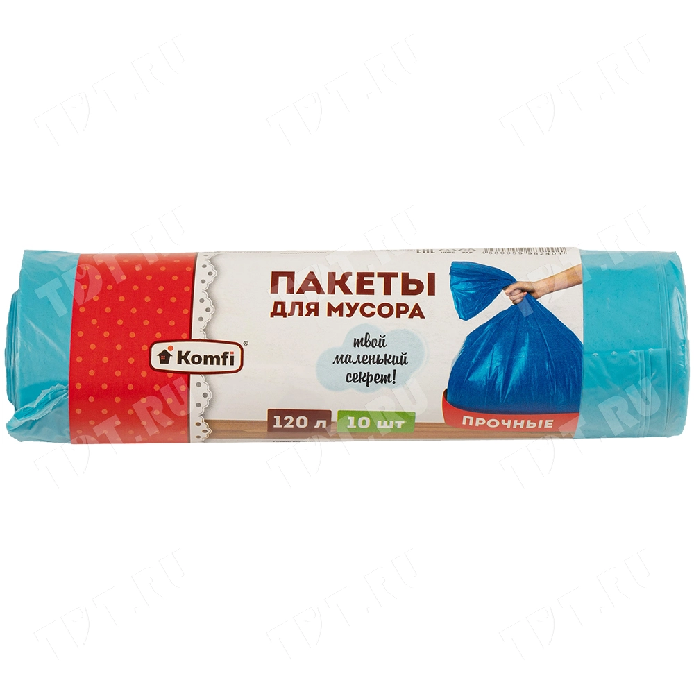 Мешки для мусора ПНД Komfi 120 литров, 70*100 см, голубые, 10 шт./рулон