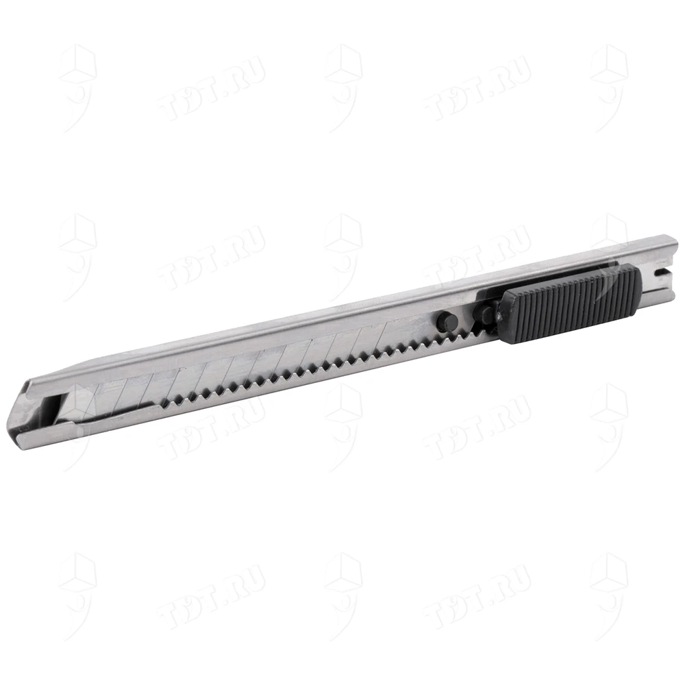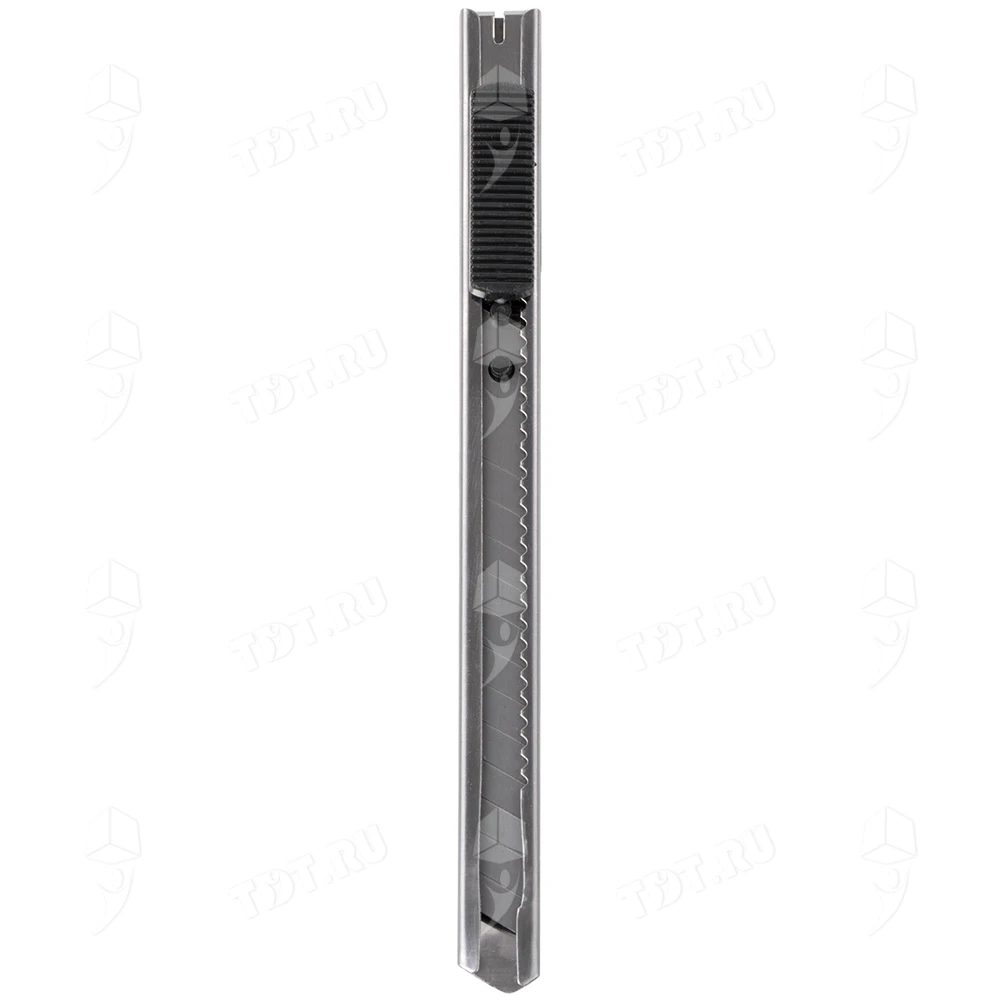 У этого канцелярского ножа металлический корпус.